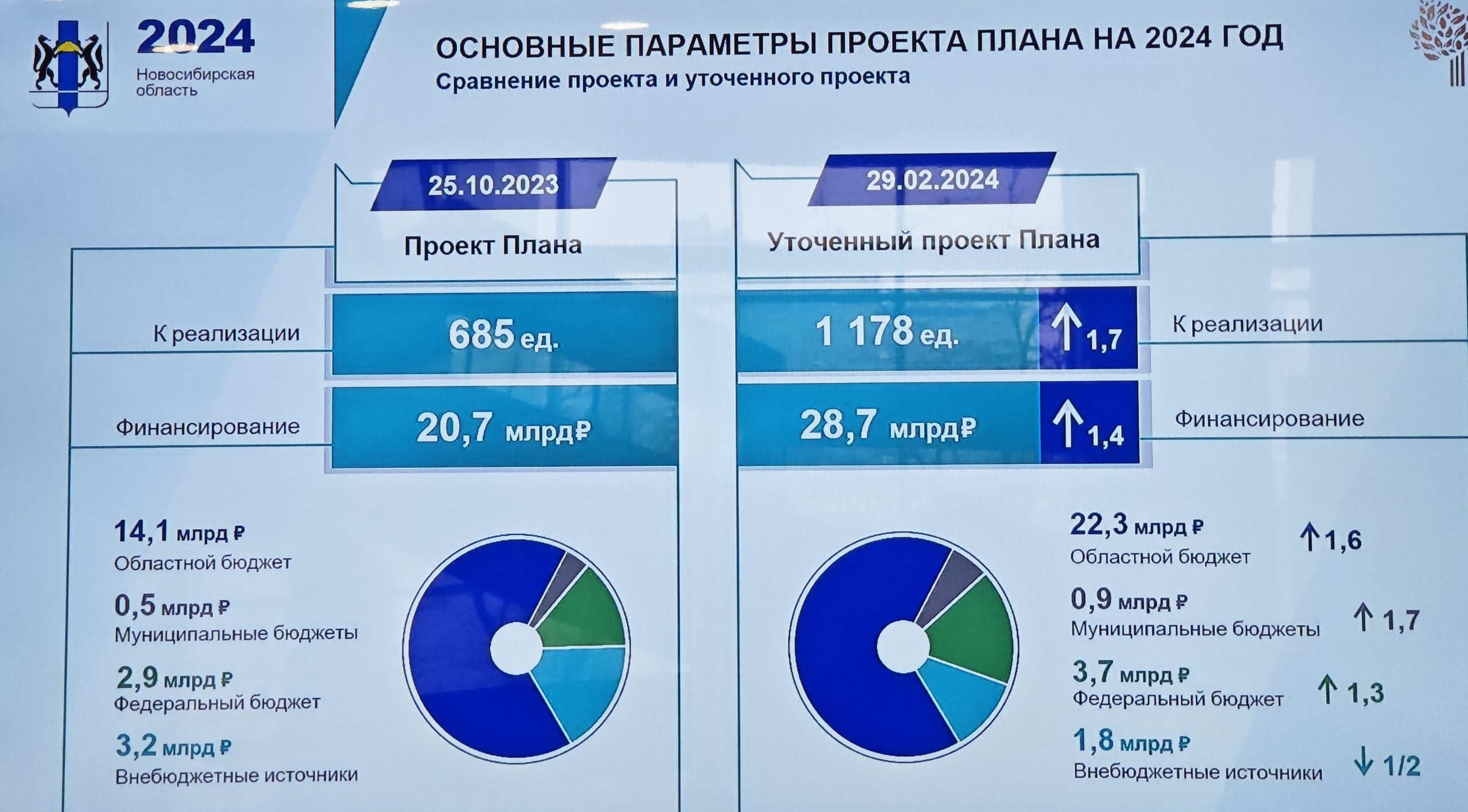 На сессии Законодательного Собрания Новосибирской области депутаты поддержали предложенный региональным Правительством план реализации наказов на 2024-й год. Как доложил министр экономического развития Лев Решетников, уточнённый план включает в себя 1178 наказов. Первый план, представленный осенью прошлого года, включал 685 наказов, — рост практически в два раза по количеству наказов. Увеличился и объём финансирования – на 8 млрд рублей. Сегодня он составляет 28,7 миллиардов рублей.
