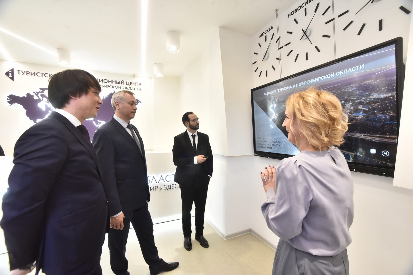 Губернатор Андрей Травников и Председатель Комитета Государственной Думы ФС РФ по туризму и развитию туристической инфраструктуры Сангаджи Тарбаев дали старт работе нового офиса туристско-информационного центра Новосибирской области. Он создан в рамках реализации государственной программы «Развитие туризма» и национального проекта «Туризм и индустрия гостеприимства» и расположен в центре Новосибирска (ул. Депутатская, 38). Открытие офиса приурочено к первому дню масштабного Форума сибирского гостеприимства «Дикоросы».