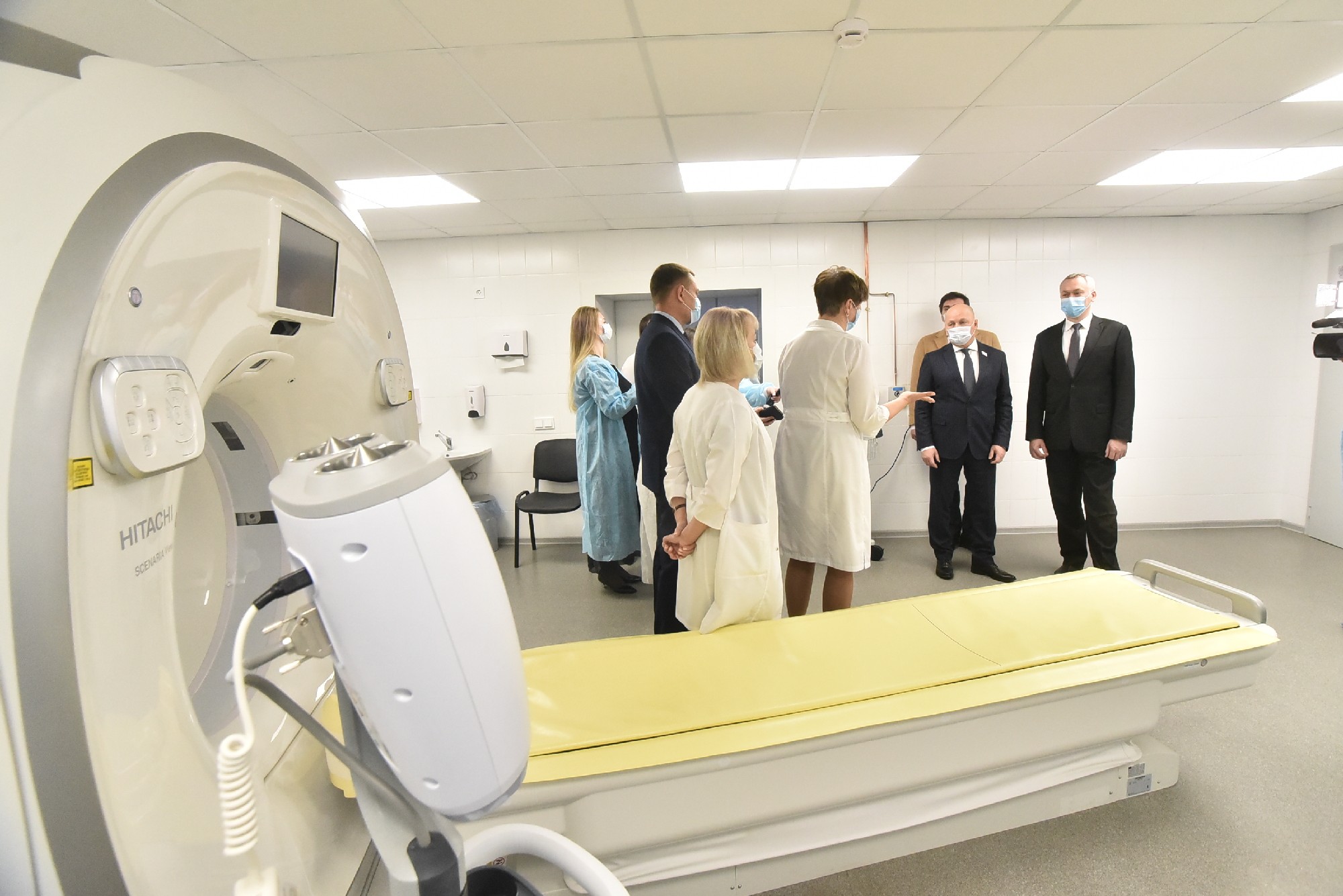 Напомним, что в рамках реализации регионального проекта «Борьба с сердечно-сосудистыми заболеваниями» в 2020 году, за счет средств федерального бюджета в Новосибирской области закуплено 13 единиц медицинского оборудования. В том числе две единицы — «тяжелого» — два компьютерных томографа, один из которых приобретен для Государственной Новосибирской областной клинической больницы. В ноябре тут установлен новый 128 срезовый рентгеновский компьютерный томограф. Компактное размещение трёх КТ и одного МР-томографа вблизи от приёмного покоя и экстренной операционной позволило сформировать «Центр КТ и МР-томографии», отметил Анатолий Юданов. Современное оборудование способствует увеличению количества исследований, разграничению потоков (в том числе и с учетом эпидемиологической ситуации), расширению арсенала диагностических возможностей с внедрением новых технологий.