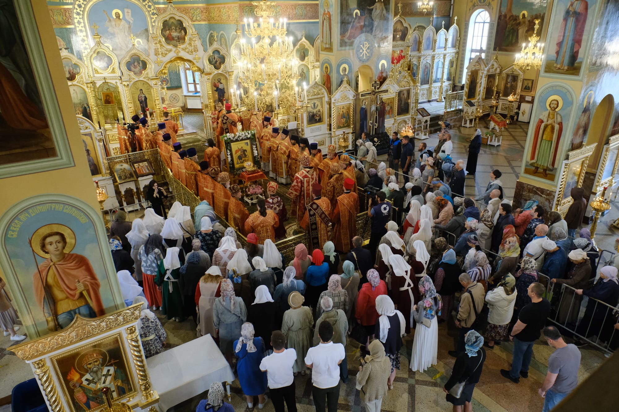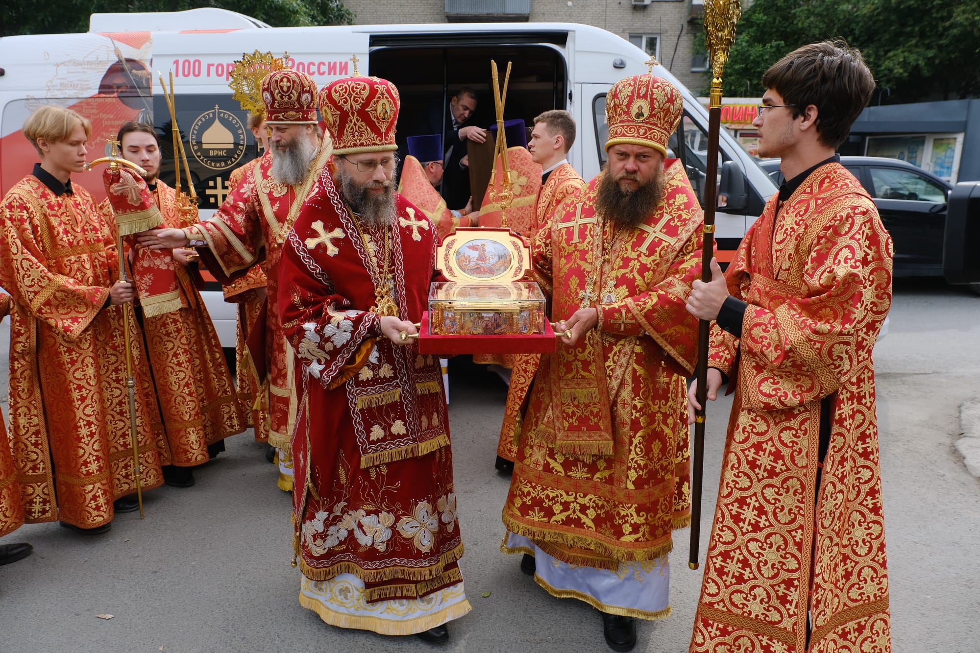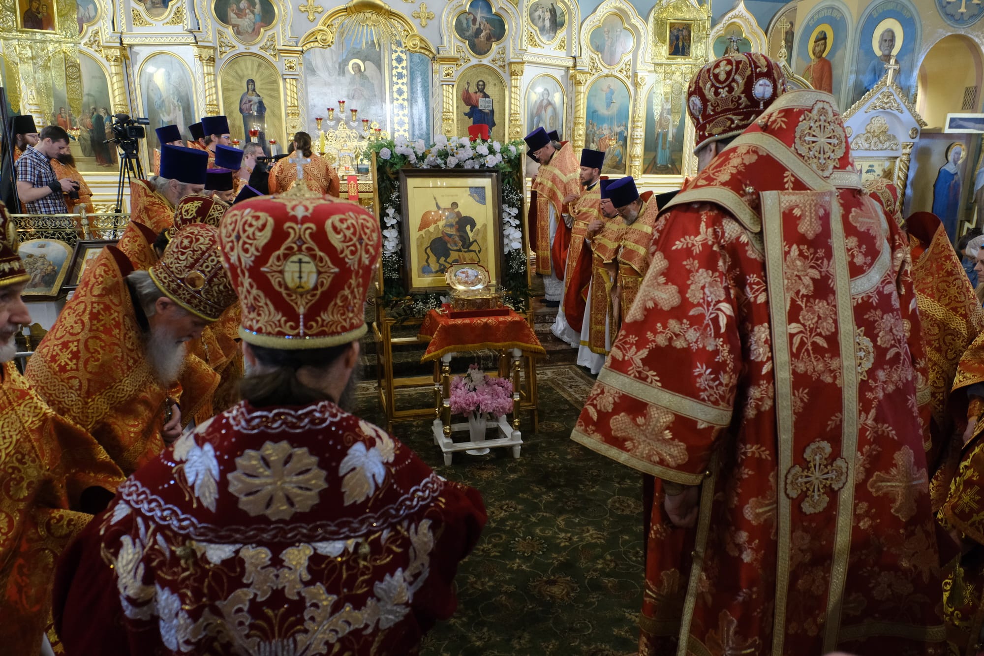 После встречи ковчега Митрополит Никодим в сослужении архиереев и духовенства Новосибирской митрополии совершил Божественную литургию.