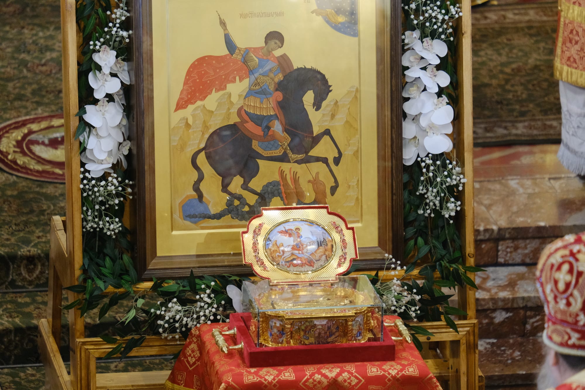 Георгий Победоносец — небесный покровитель Русского воинства. Акция «Молебен о Победе» объединяет сто городов в 89 регионах России. Во всех городах во время следования святыни духовенство и миряне Русской Православной Церкви молятся о военнослужащих Российской армии и всех защитниках Отечества.