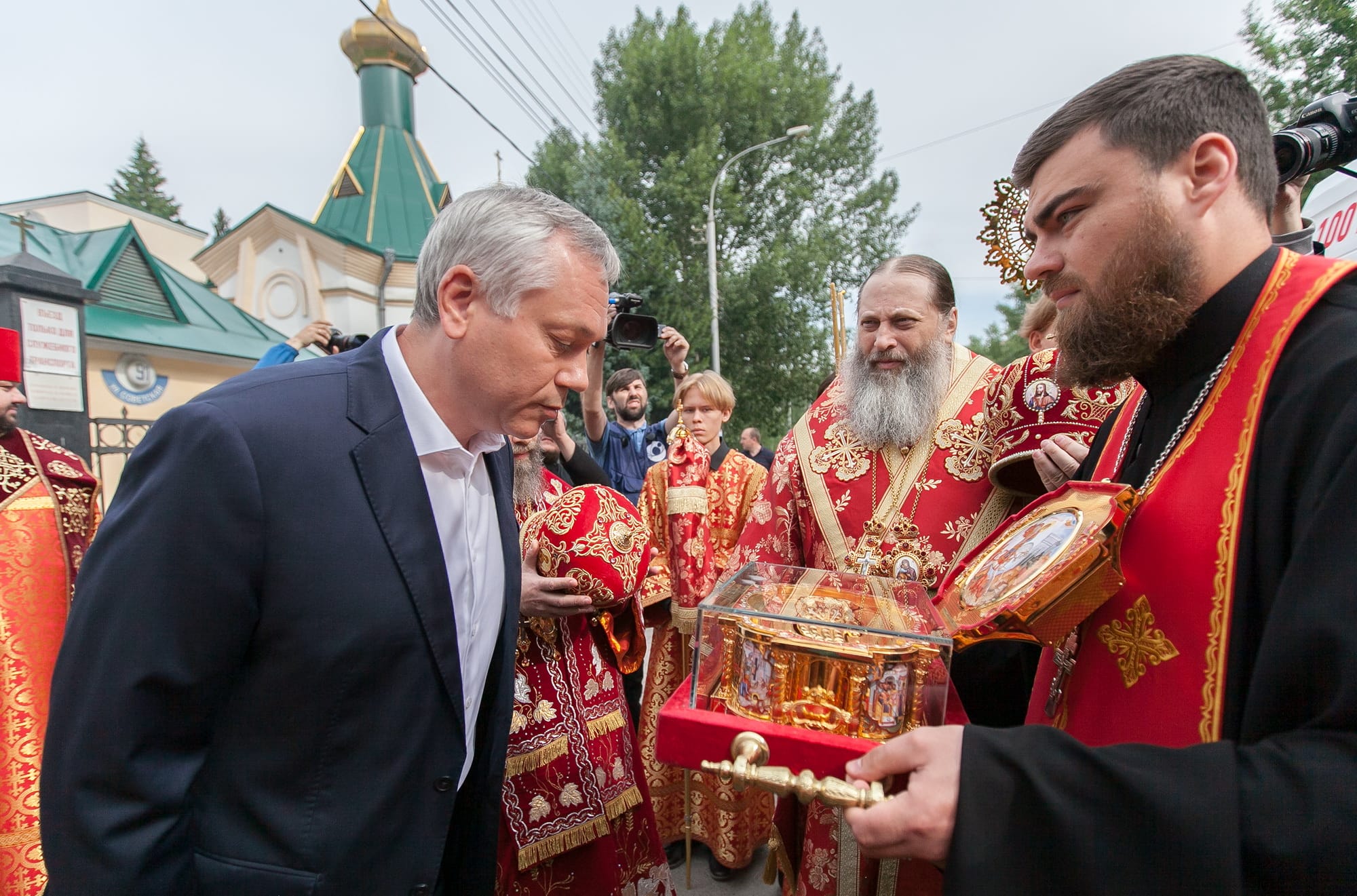 Вместе с новосибирцами во встрече святыни сегодня утром участие приняли Губернатор Новосибирской области Андрей Травников, Митрополит Новосибирский и Бердский Никодим.