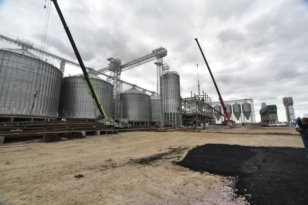 Заместитель генерального директора по строительству Павел Таюрский отметил, что в апреле этого года на объекте приступили к основному строительству и планируют завершить первую очередь – на 1000 тонн – во втором квартале следующего года. Общий объём финансирования – 6,5 миллиардов рублей, из которых на первую очередь направлено 3,5 миллиарда. Сегодня почти полностью готов элеваторный комплекс, который будет принимать зерно как с железнодорожного, так и с автомобильного транспорта. Далее зерно переходит в чистку, сушку и во временное хранение – это 60 тысяч тонн одновременного хранения зерна. На территории завода строится отдельная лаборатория, которая будет заниматься контролем качества масла. Здесь же будет проводиться сертификация продукции.