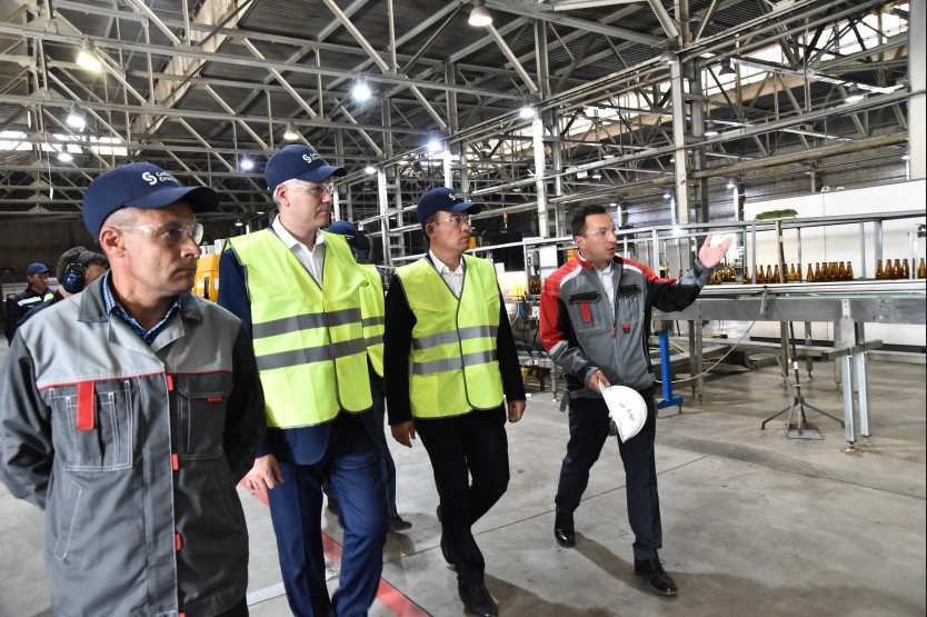 Андрею Травникову и Улугбеку Косимову продемонстрировали ход реконструкции предприятия, а также работу линии по выпуску стеклотары. Генеральный директор ООО «Сибирское стекло» Антон Мор доложил главе региона о развитии производственных связей с Республикой Узбекистан. В частности, сибирское предприятие заинтересованно в сырье высокого качества, кварцевом песке, из Узбекистана.