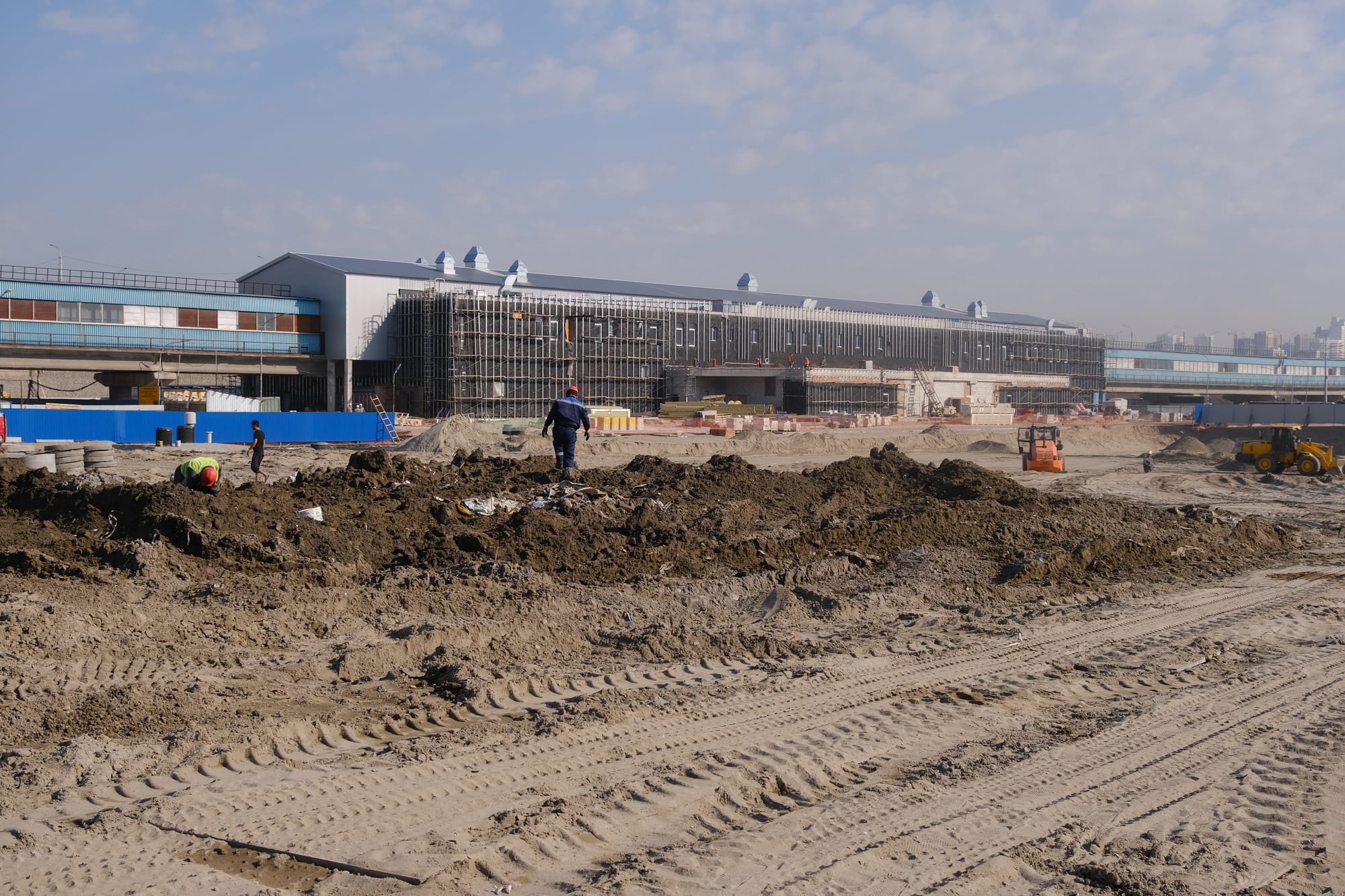 Кроме того, началась отсыпка площадки возле ледового дворца, создается вертикальная планировка территории, для чего на участок продолжают завозить песок и щебень.