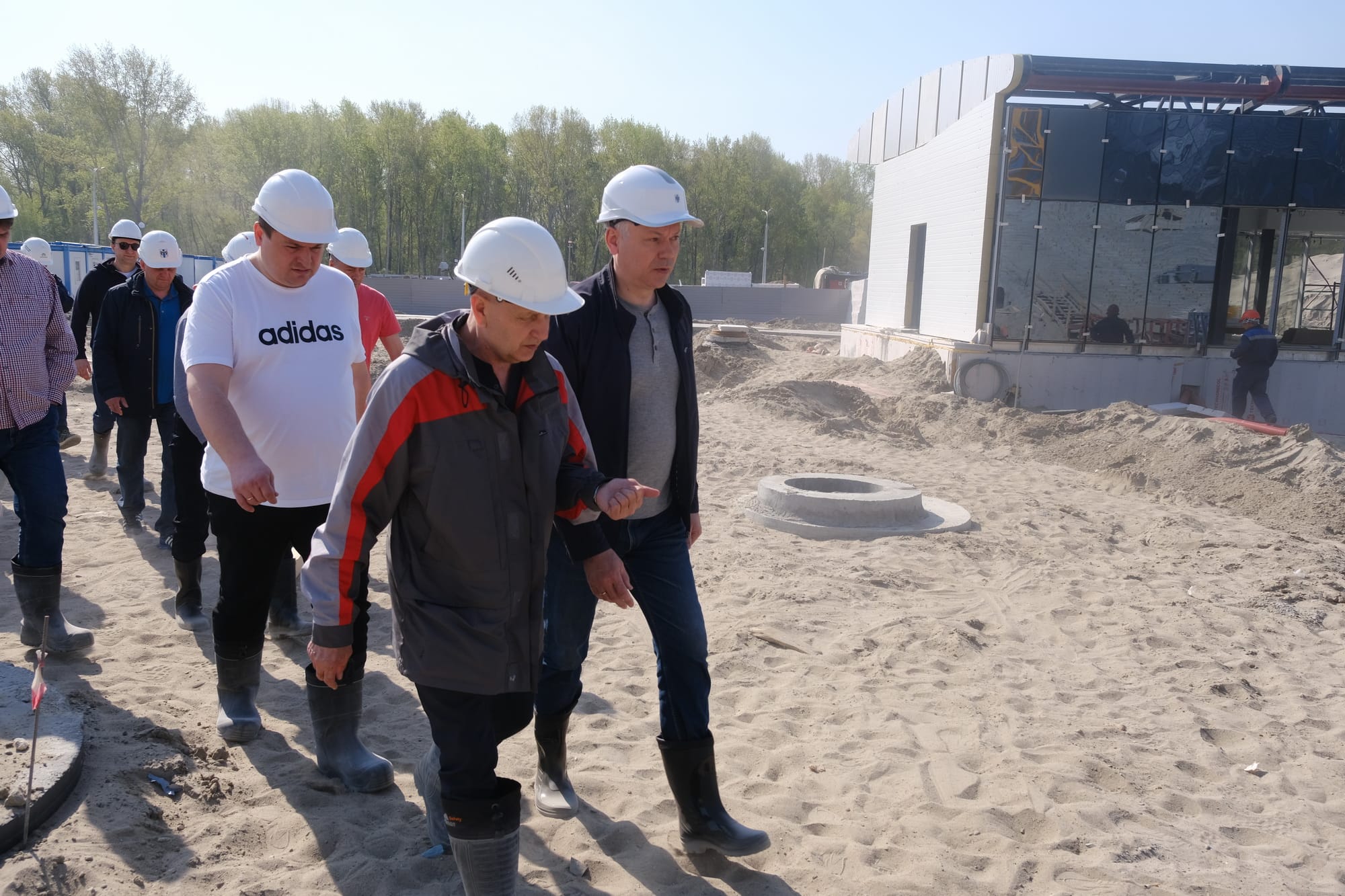 Губернатор Андрей Травников проконтролировал соблюдение графика строительства Многофункциональной ледовой арены во время выездного совещания 14 мая.