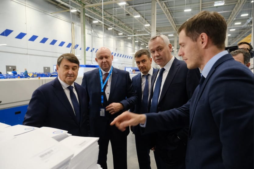 Губернатор Андрей Травников и помощник Президента Российской Федерации Игорь Левитин посетили с рабочей поездкой Новосибирский логистический почтовый центр «Почты России».
