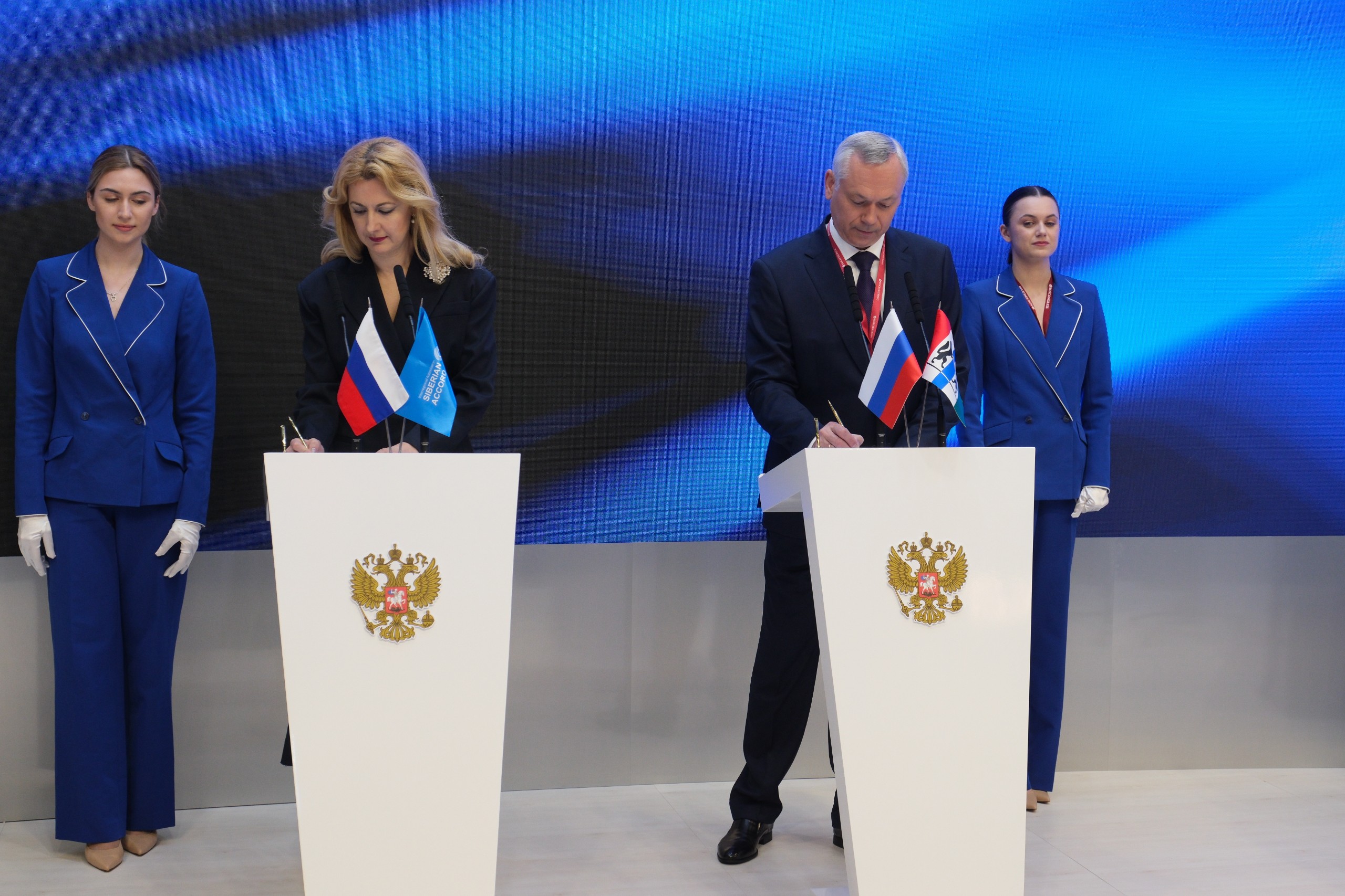 Подписи под соглашением поставили Губернатор Новосибирской области Андрей Травников и генеральный директор ПАО «МТС» Инесса Галактионова.