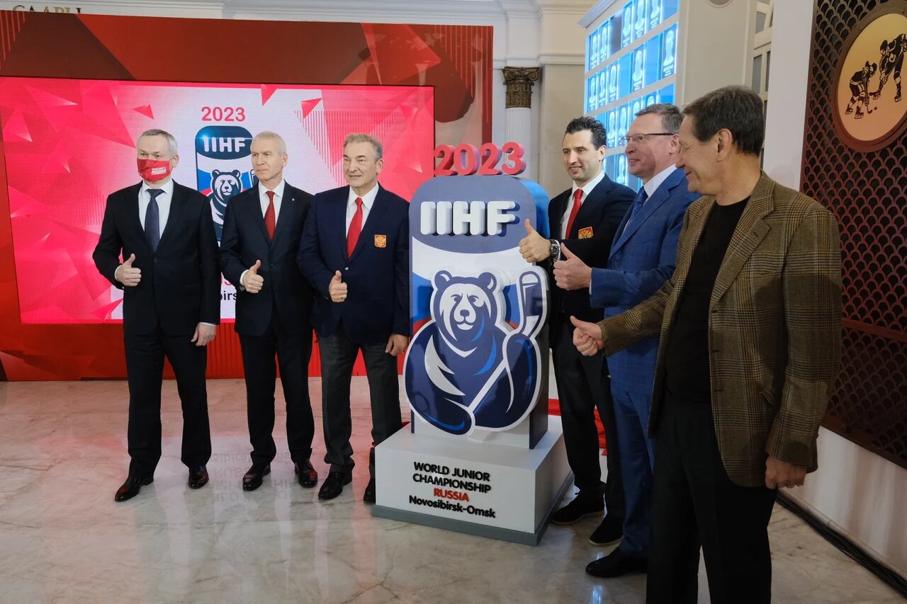 В Музее хоккейной славы (Москва) презентовали официальную эмблему первенства мира по хоккею среди юниоров до 20 лет, которое пройдет в Новосибирске и Омске в 2023 году.