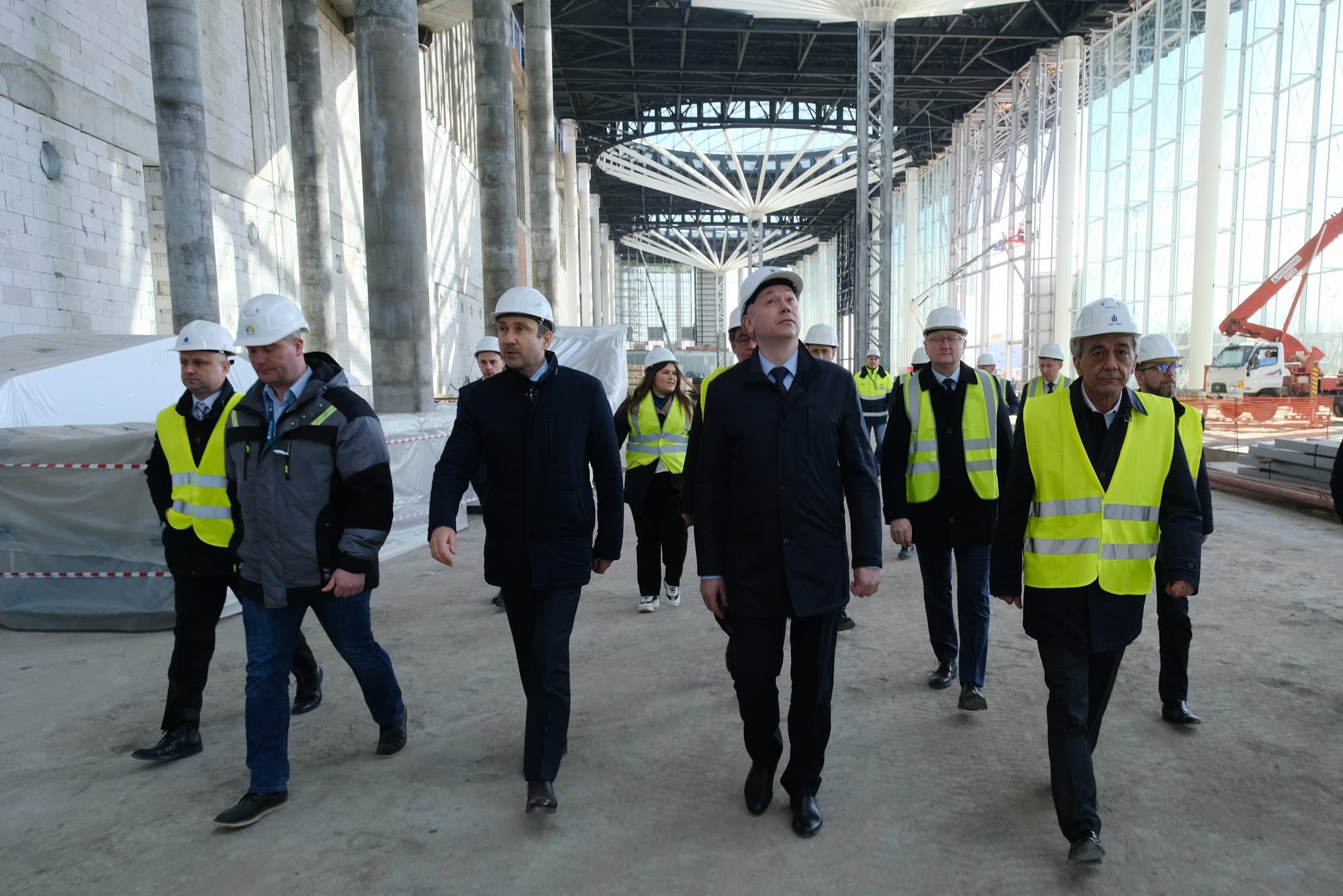 Состоялась рабочая поездка губернатора Андрея Травникова на площадку строительства нового аэровокзального комплекса новосибирского международного аэропорта.