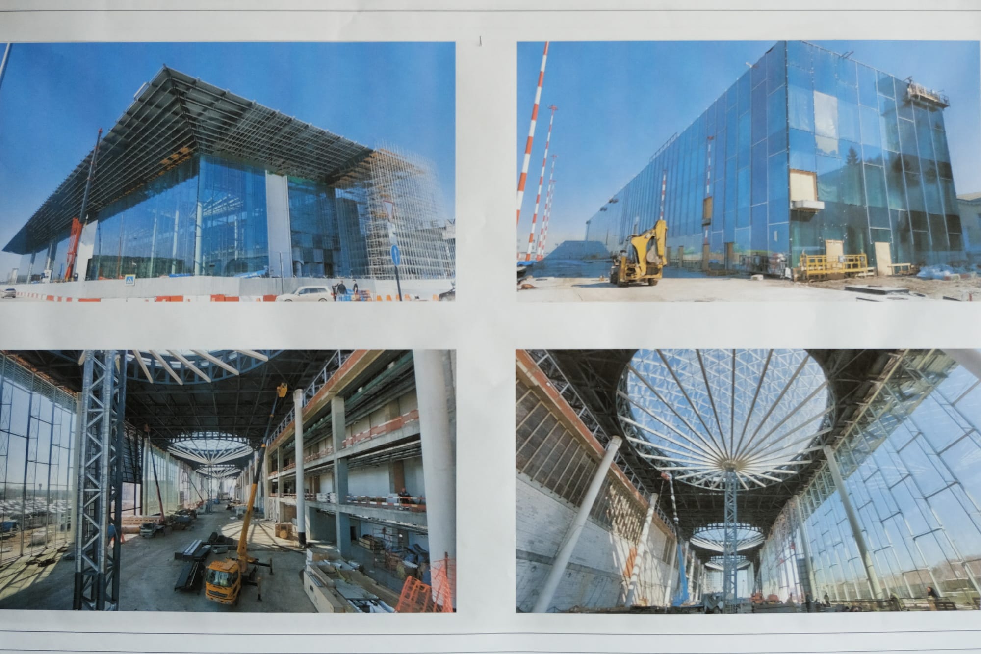 Генеральный директор АО «Аэропорт Толмачево» Евгений Янкилевич и руководитель проекта, господин Бюлент Озтурк доложили главе региона о ходе работ: возведение одного из важнейших инфраструктурных объектов области ведется в соответствии с утвержденным графиком. Строители закончили остекление куполов главного атриума аэровокзального комплекса, завершаются работы по остеклению светопрозрачных фасадов и устройству конструкций входных групп. Продолжается монтаж внутреннего инженерного оборудования. Начаты работы по устройству навесной декоративной системы облицовки козырька главного атриума. Строительство нового терминала площадью 56 тыс. кв. м планируется завершить в III квартале 2022 года.