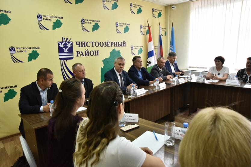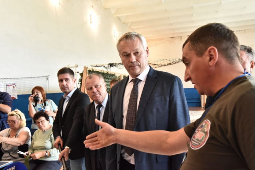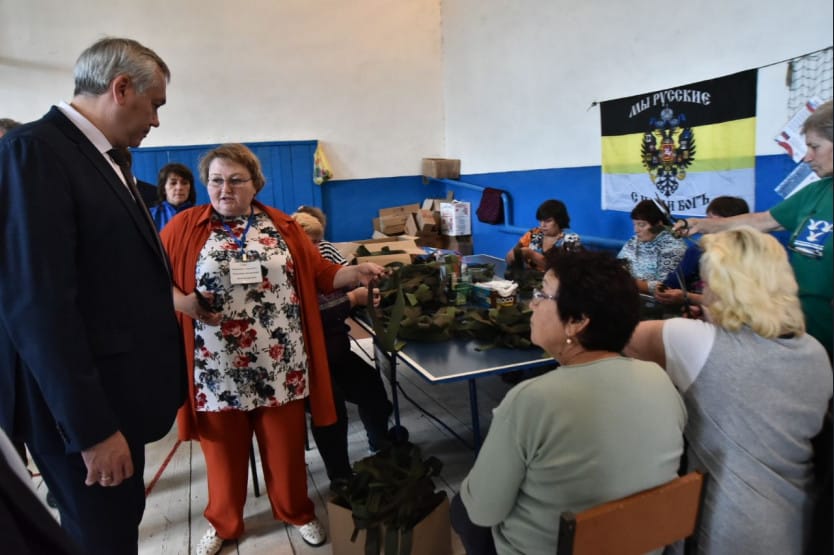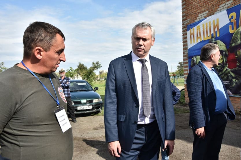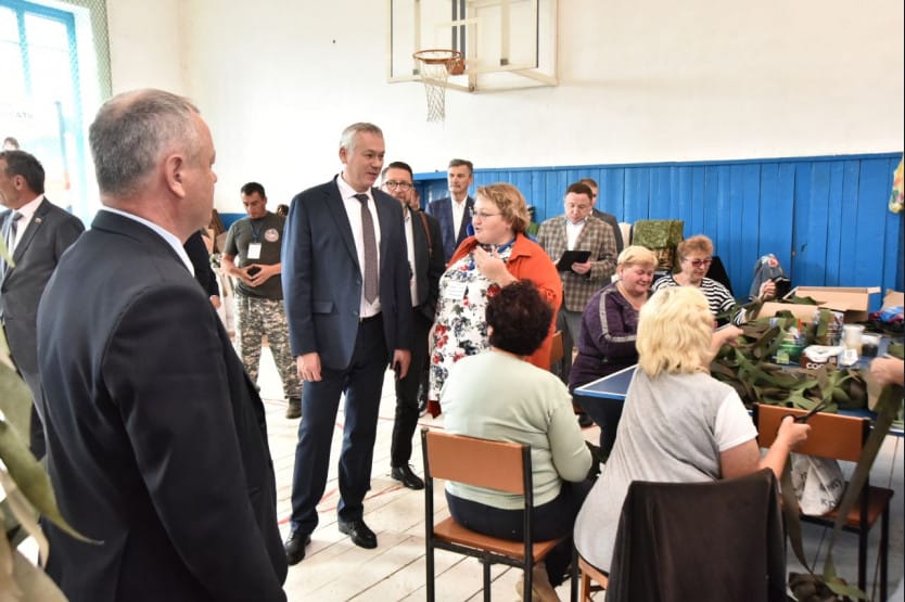 Губернатор Андрей Травников и Председатель Законодательного Собрания Новосибирской области Андрей Шимкив в рамках рабочей поездки в Чистоозёрный район провели в селе Журавка встречу с общественниками и активистами организации производства товаров и продуктов для участников специальной военной операции.