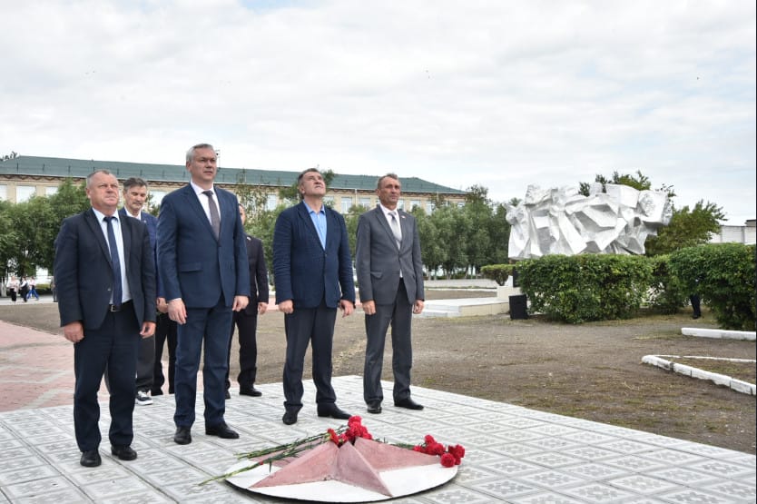 В р. п. Чистоозёрное Андрей Травников и Андрей Шимкив возложили цветы к Мемориалу памяти земляков, погибших в годы Великой Отечественной войны 1941-1945 гг., обсудили планы реконструкции мемориала. Памятник представляет собой композицию из Вечного огня, скульптур Родины-матери, мемориальной стены в память земляков – защитников Отечества. Комплекс нуждается в реконструкции. На завершение ремонта району необходимы средства в размере 8,9 млн рублей. Андрей Травников заявил, что эти средства будут предоставлены муниципалитету.
