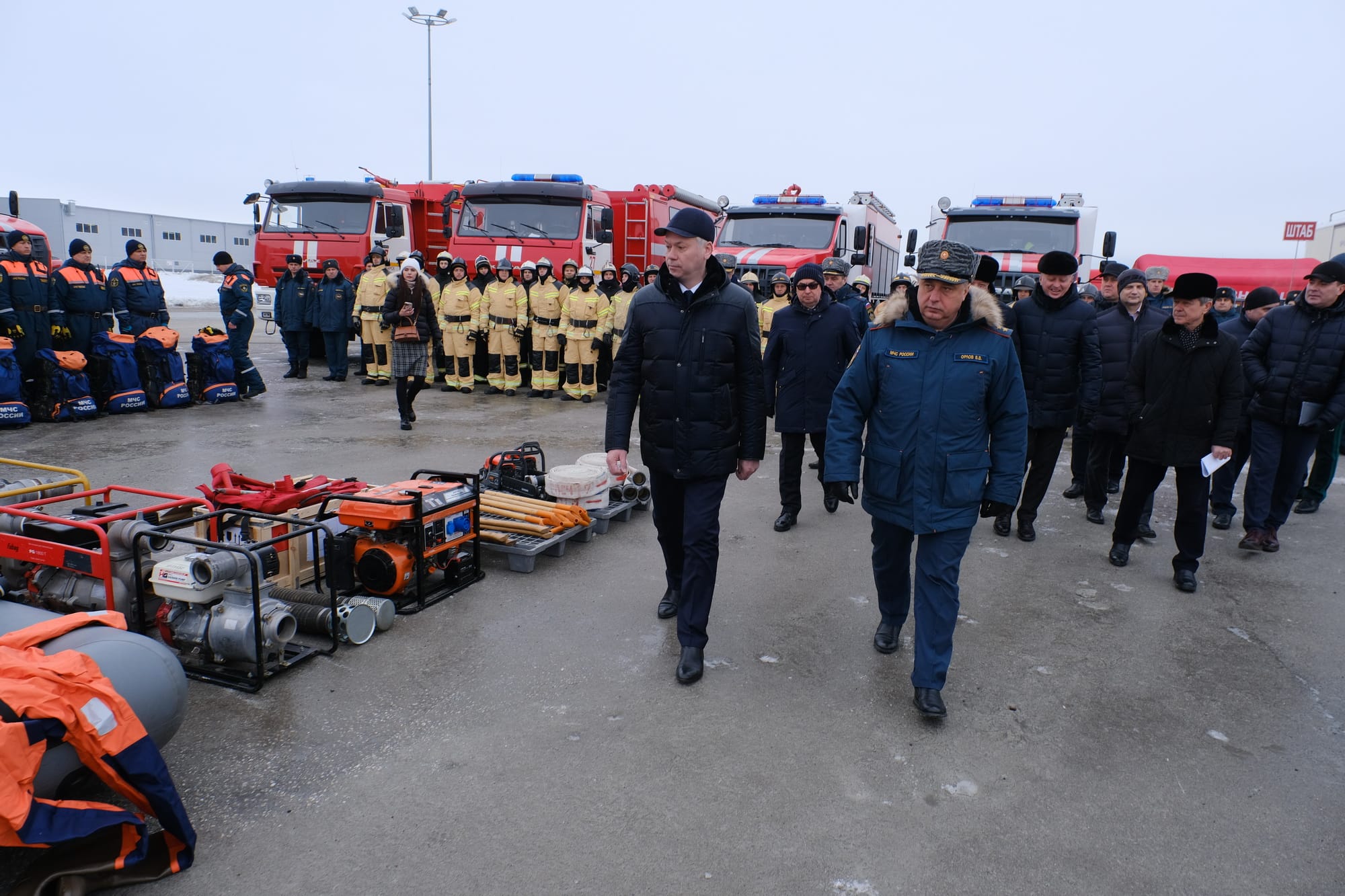 Также глава региона провел заседание комиссии по предупреждению и ликвидации чрезвычайных ситуаций и обеспечению пожарной безопасности Новосибирской области. Смотр и заседание прошли на площадке у МВК «Новосибирск Экспоцентр».