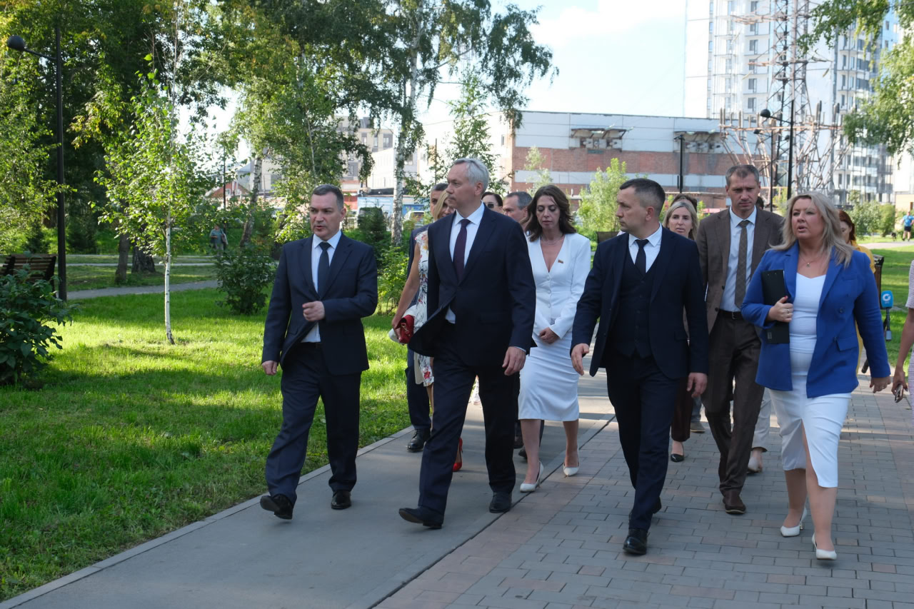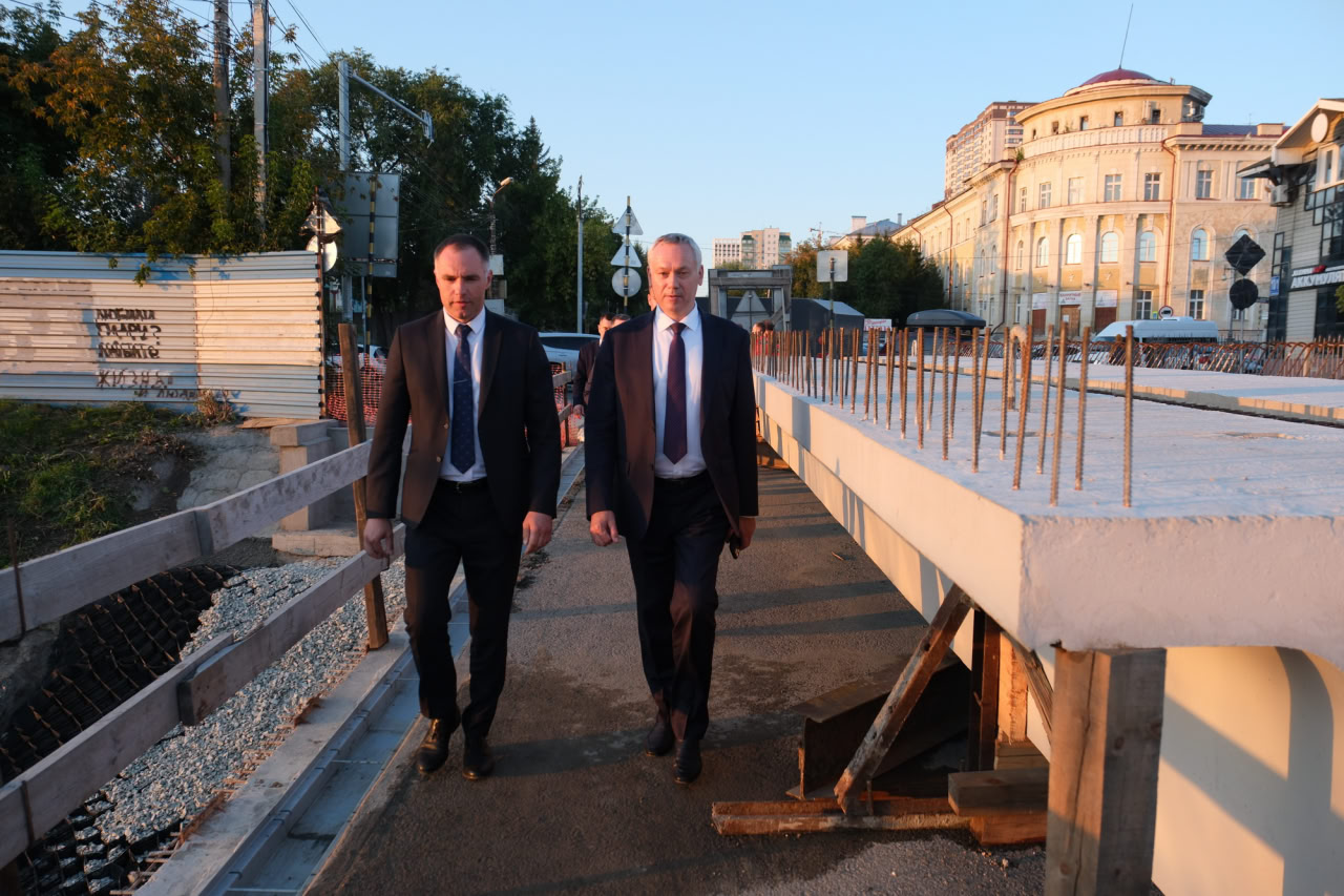 Скверы Бугакова и Героев Донбасса, путепровод на Добролюбова: Андрей Травников проконтролировал работы на знаковых объектах Октябрьского района