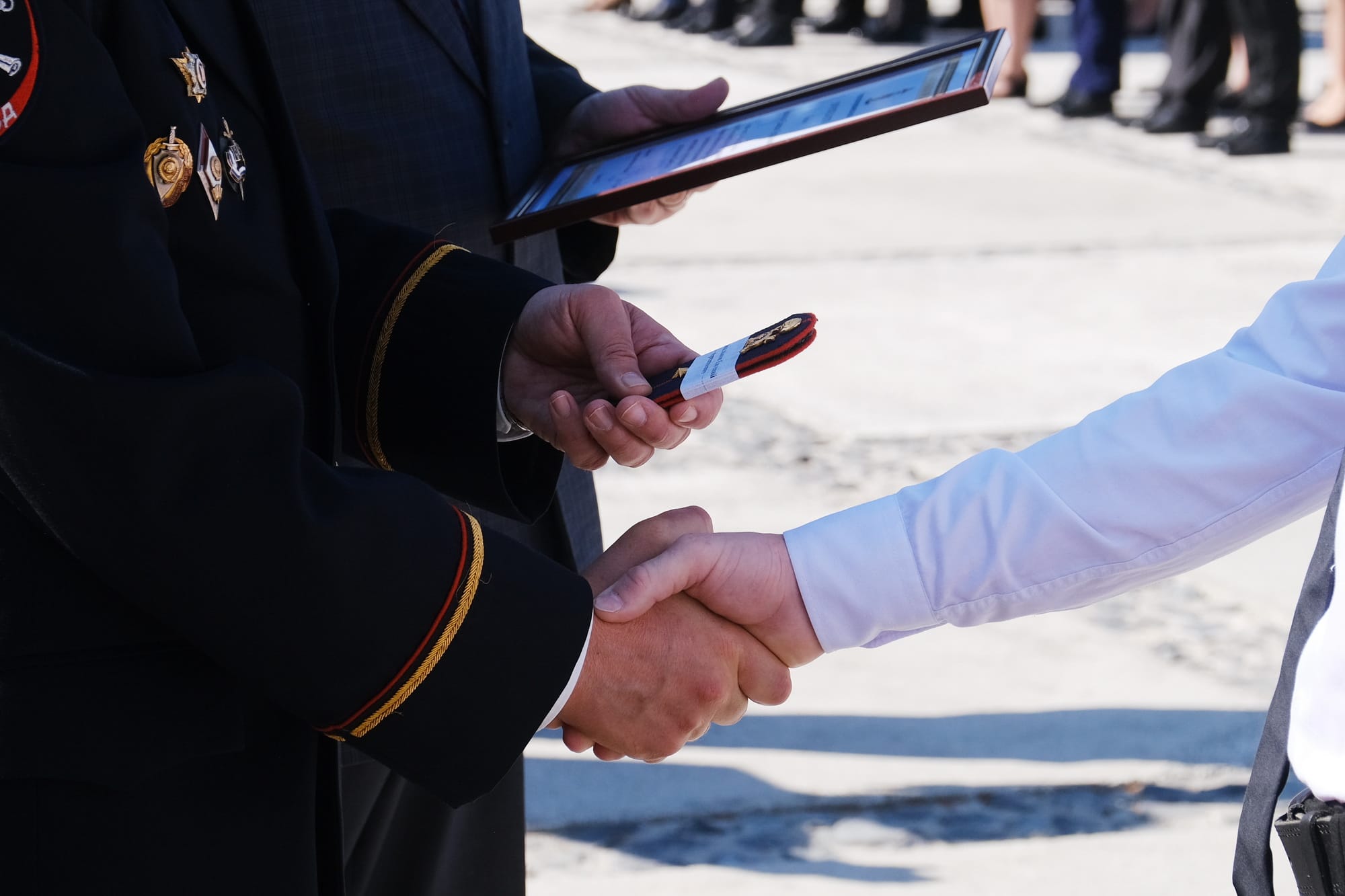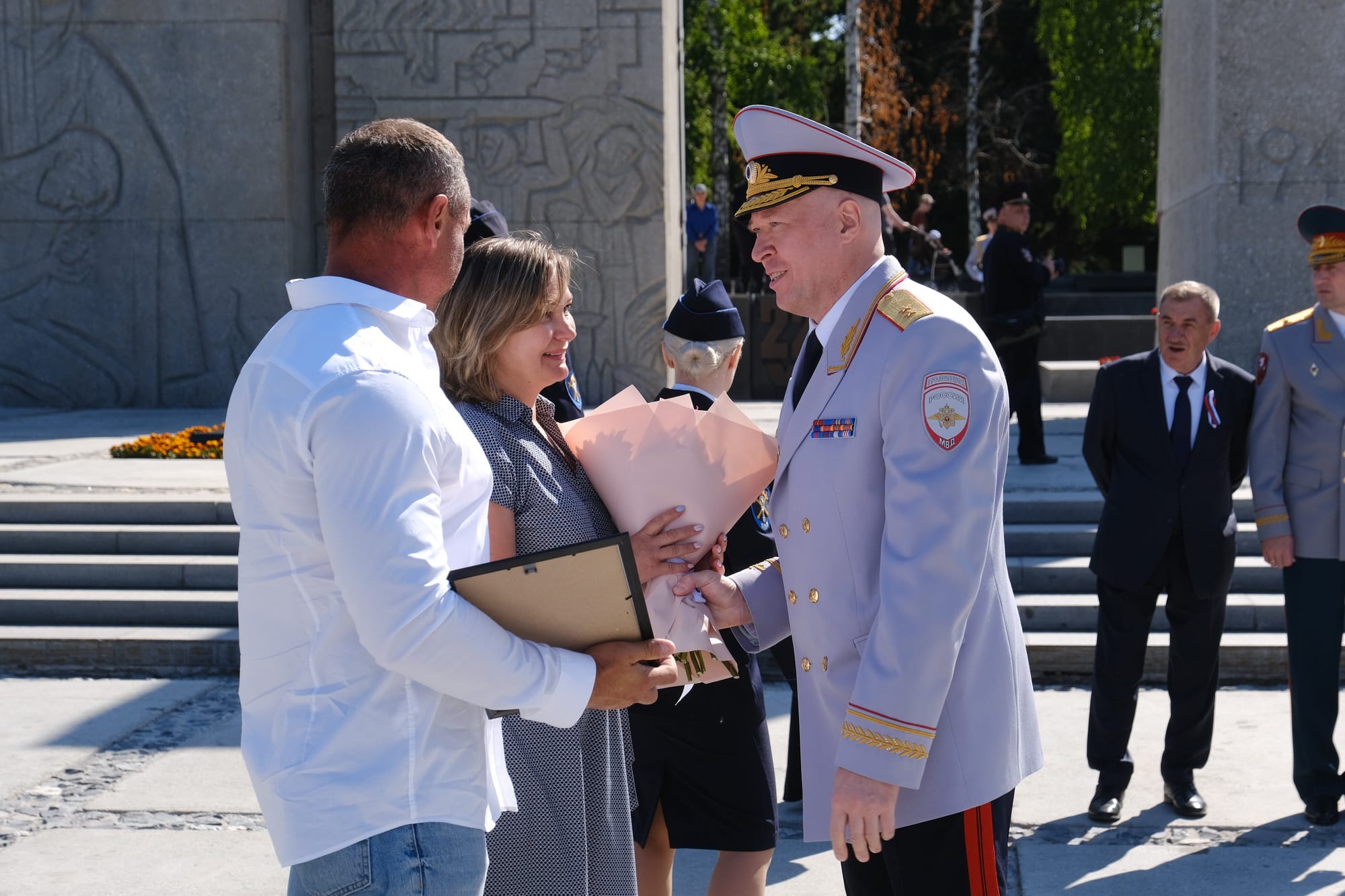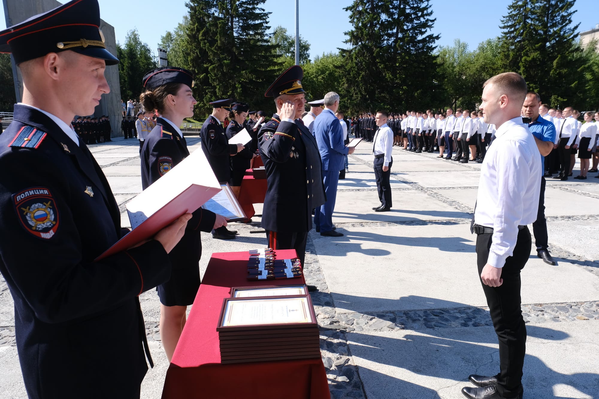 Напутствовал молодых офицеров и начальник ГУ МВД России по Новосибирской области: «Сегодня самый важный момент – вам присвоено первое офицерское звание. Уже три года подряд мы следуем лучшим традициям – вручаем офицерские погоны – как символ чести и достоинства – здесь, на Монументе Славы, в самый главный государственный праздник нашей страны – День России. Именно с этой самой минуты вы становитесь продолжателями лучших традиций нашего Главного управления, становитесь приемниками предшествующих поколений наших коллег. Уверен, что вы честно, добросовестно и с полной самоотдачей будете выполнять задачи по обеспечению правопорядка в нашем регионе, станете настоящими защитниками нашей Родины».