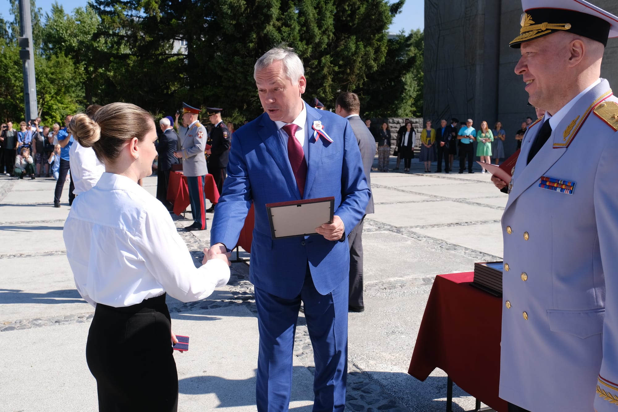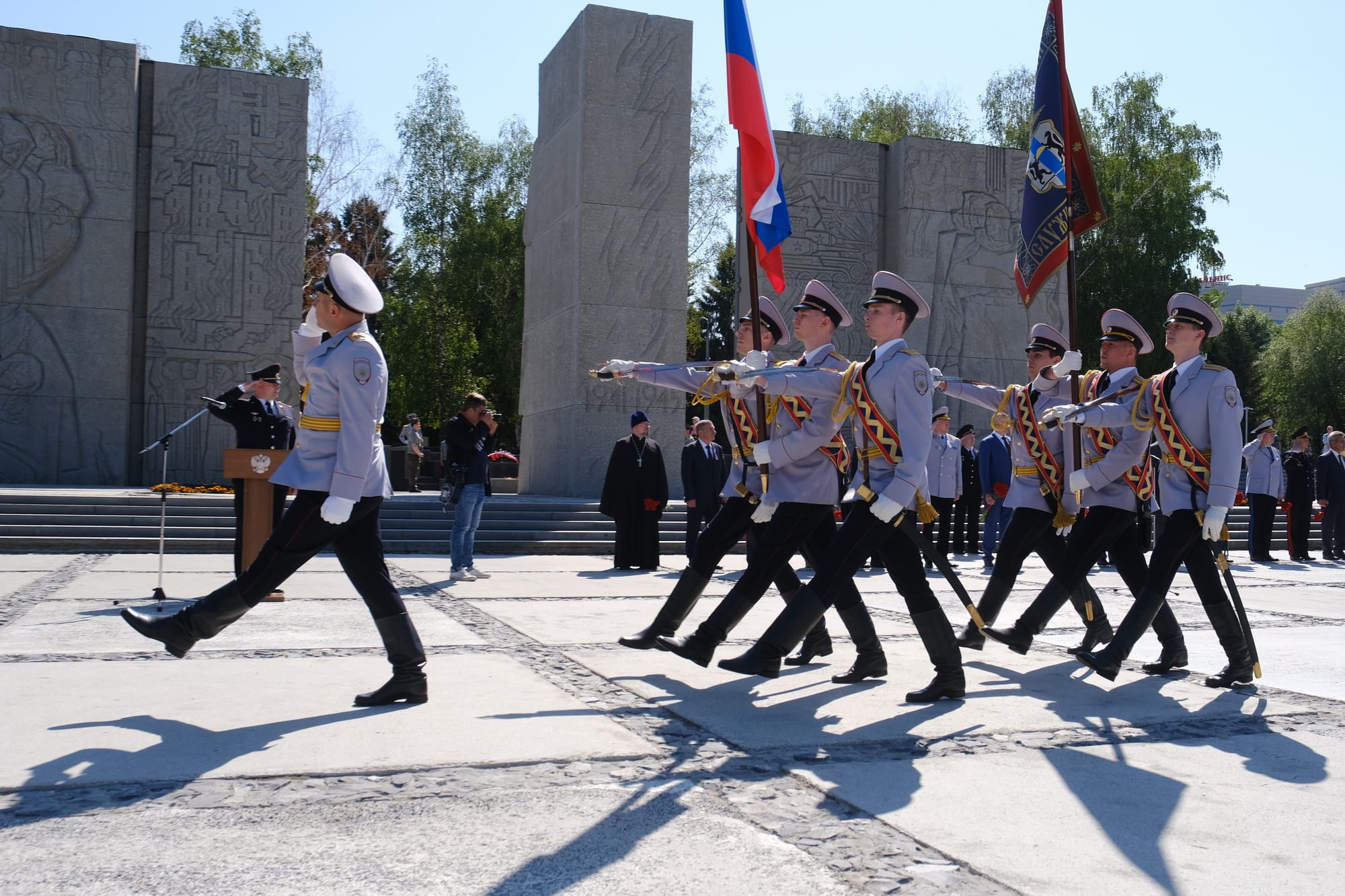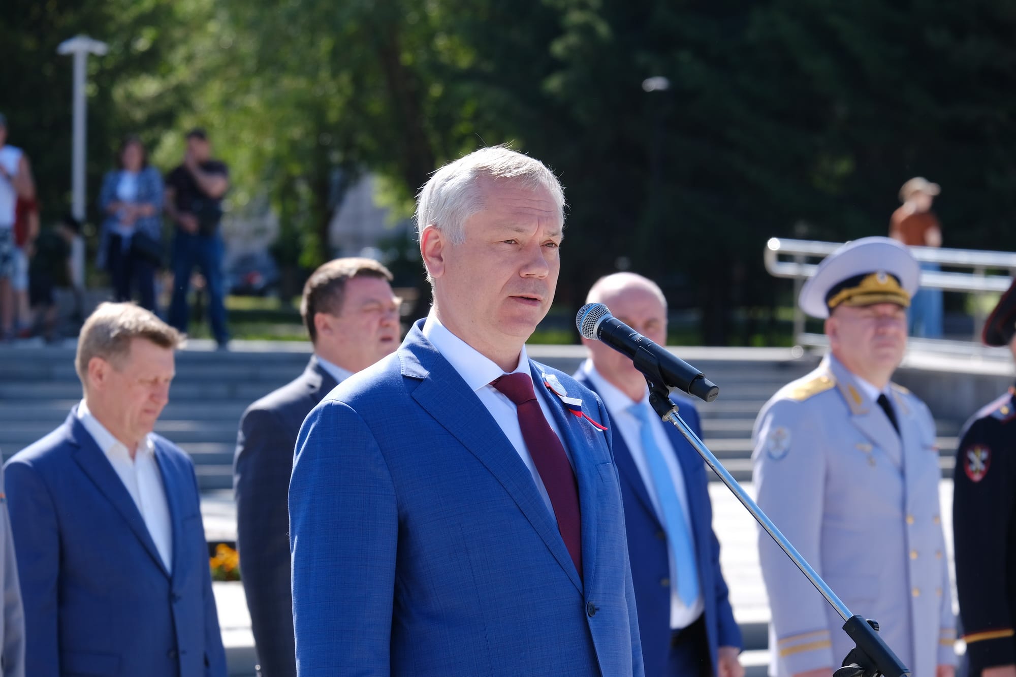 «Вы получили погоны офицера в священном для всех новосибирцев месте и в большой важный государственный праздник нашей страны. Я уверен, что воспоминания об этом дне будут наполнены ответственностью перед вашими предками — поколением победителей, которые заплатили высокую цену за наше право стоять здесь и за ваше право сказать сегодня: «Служу России!» И ответственность, конечно, перед нашим государством, нашим народом.