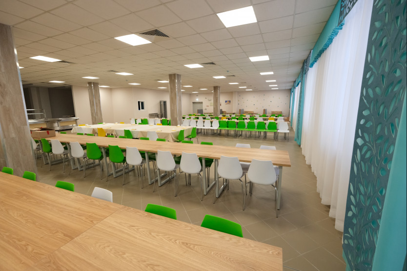В здании нового корпуса имеются два спортивных зала, полностью оснащённых необходимым спортинвентарём, тренажёрный зал, актовый зал, рассчитанный на 300 мест и укомплектованный звуковым и световым оборудованием и техникой, столовая с обедённым залом на 250 посадочных мест.