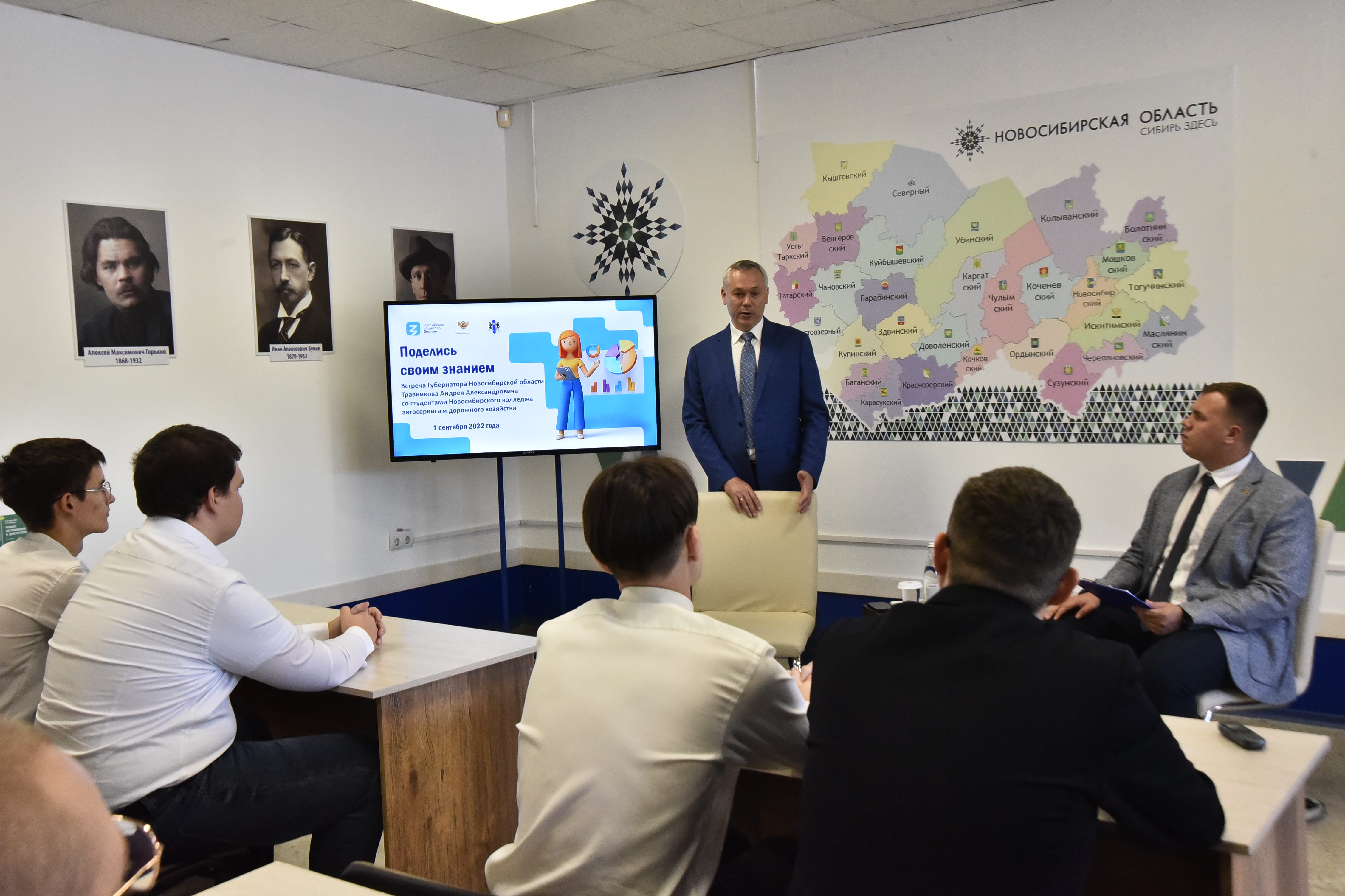 Также Андрей Травников отметил, что у него в рамках просветительской акции «Поделись своим Знанием» состоялся очень откровенный разговор со студентами, прозвучали насущные вопросы о развитии и будущем Новосибирской области и всей России. Акция «Поделись своим Знанием» Российского общества «Знание» проходит при поддержке Министерства просвещения РФ и Министерства науки и высшего образования РФ. «Поделись своим Знанием» – это конструктивный диалог, обмен мнениями и передача опыта между поколениями.