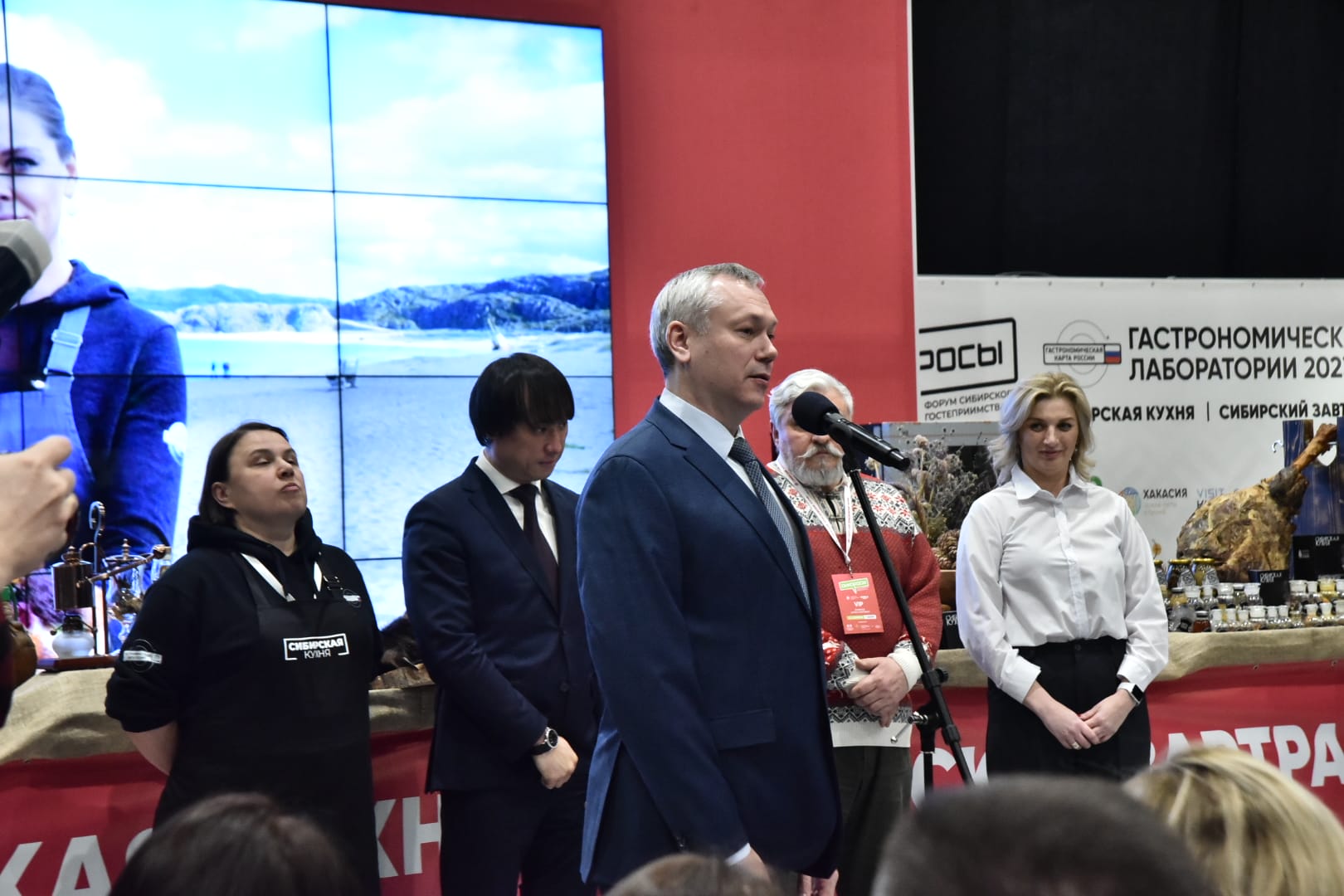 Главы Новосибирской области и Республики Алтай Андрей Травников и Олег Хорохордин, Председатель Комитета Государственной Думы ФС РФ по туризму и развитию туристической инфраструктуры Сангаджи Тарбаев и другие официальные лица приняли участие в осмотре экспозиции и торжественном открытии выставки «HoReCa Siberia» и «Лаборатории сибирской кухни» в рамках первого дня работы Форума сибирского гостеприимства «Дикоросы» в новосибирском Экспоцентре.