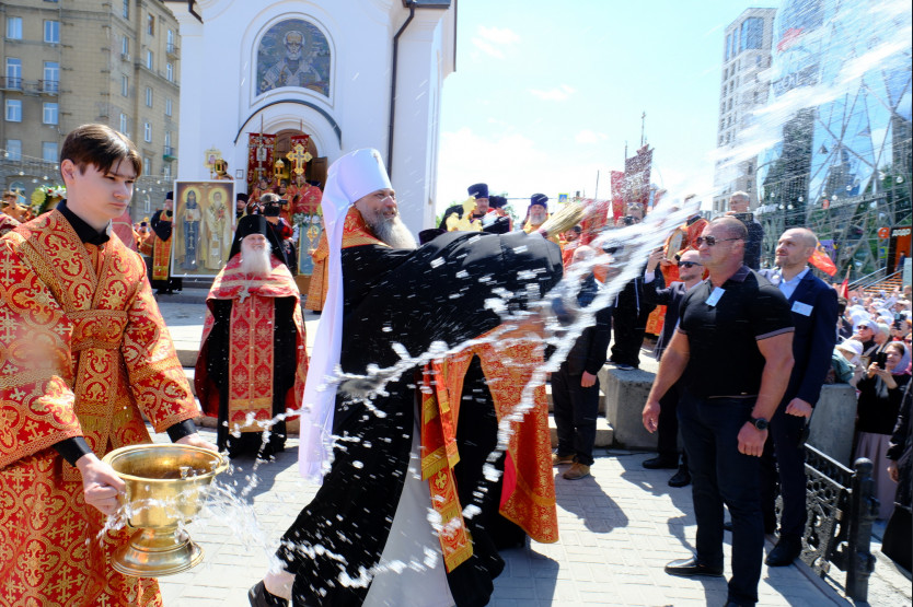 Крестный ход возглавили Губернатор Новосибирской области Андрей Травников и Митрополит Новосибирский и Бердский Никодим. Праздничное шествие протянулось в центре Новосибирска от Вознесенского Кафедрального собора к Свято-Никольской часовне, а затем к Новосибирскому государственному академическому театру оперы и балета.