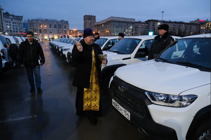 Ключи от 35 новых автомобилей «Нива Тревел» вручены полицейским на площади Ленина в Новосибирске. В торжественной церемонии приняли участие начальник ГУ МВД России по Новосибирской области Андрей Кульков, заместитель Председателя Законодательного Собрания Новосибирской области Владимир Карпов, представитель Новосибирской Епархии Русской Православной Церкви, протоиерей Сергей Коновалов.