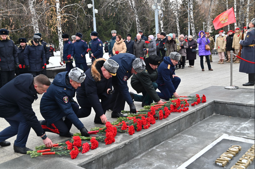 В торжественной церемонии возложения венков и цветов, посвящённой памяти погибших российских и советских воинов, чьи имена остались неизвестными, приняли участие полномочный представитель Президента Российской Федерации в Сибирском федеральном округе Анатолий Серышев, Председатель Законодательного Собрания Новосибирской области Андрей Шимкив, мэр Новосибирска Максим Кудрявцев, представители федеральных и региональных органов власти, правоохранительных органов, местного самоуправления, общественных организаций, жители региона.
