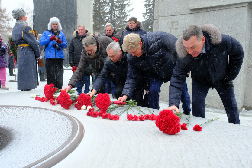 В День Защитника Отечества Андрей Травников вместе с новосибирцами возложил цветы к Вечному Огню