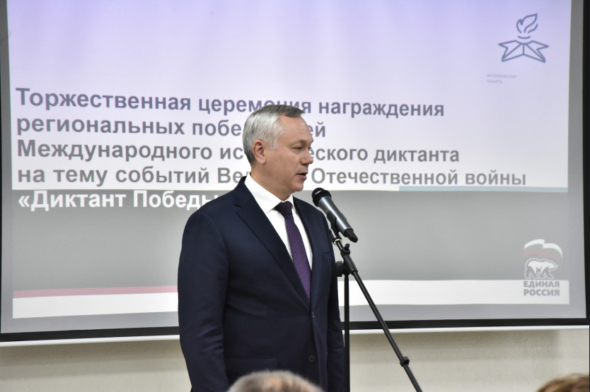 Губернатор Андрей Травников принял участие в церемонии награждения региональных победителей Международного исторического диктанта, посвященного событиям Великой Отечественной войны 1941-1945 гг. «Диктант Победы».