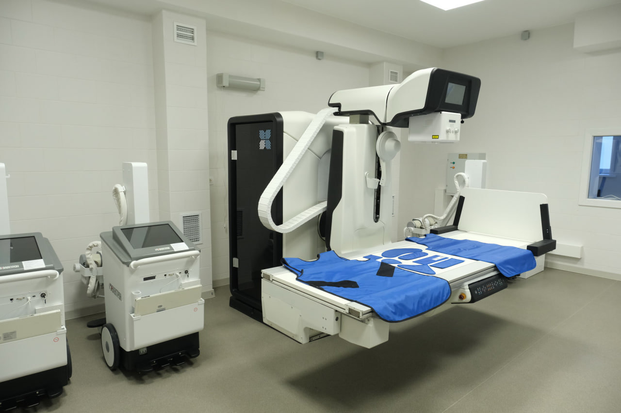 В рентген-отделении, сообщил главный врач ГКБ №34 Ярослав Фролов, установлен самый современный рентген-аппарат на три рабочих места, а также три передвижные установки, которые позволяют непосредственно и в операционной, и в реанимации, и в палатах проводить обследования; установлен и дентальный компьютерный томограф, который позволят работать с пациентами с травмами челюстей, делать обзорные снимки. Всего в новом корпусе 2450 единиц оборудования.