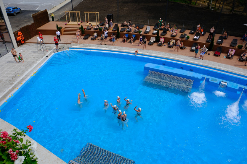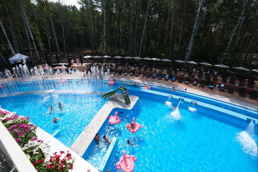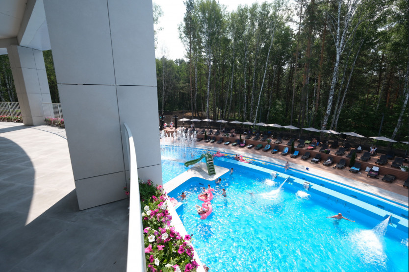 Новый комплекс вместимостью 500 человек включает в себя водную зону с термальным и детским бассейнами, искусственной рекой и аттракционами, зону саун, СПА-зону, детскую комнату, фуд-корт. Общая площадь акватермального комплекса составляет более 7650 кв. м, в т.ч. площадь зоны питания - 660 кв. м, СПА-зоны – 300 кв. м, саун – 300 кв. м; площадь водной зоны – 1350,0 кв. м.