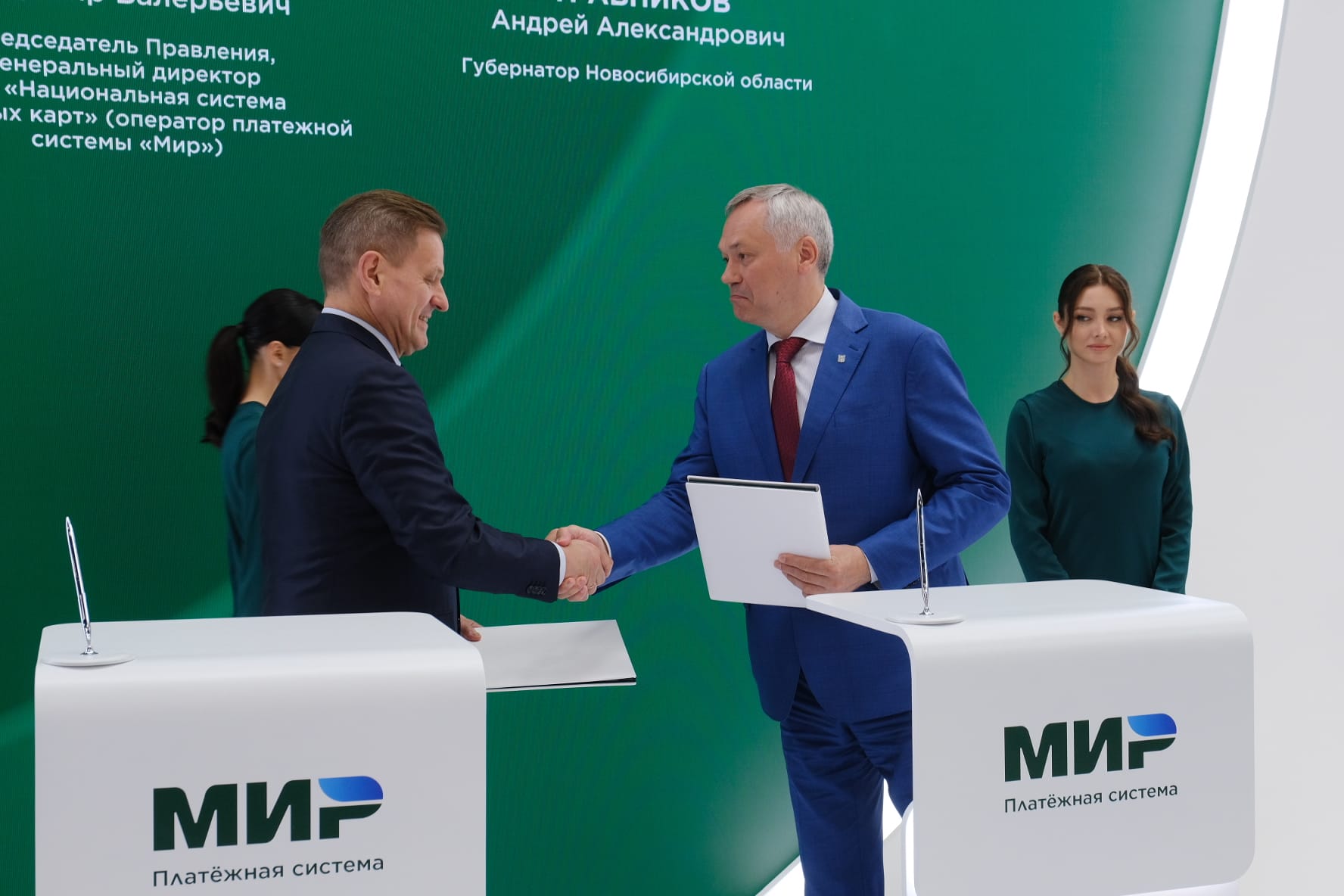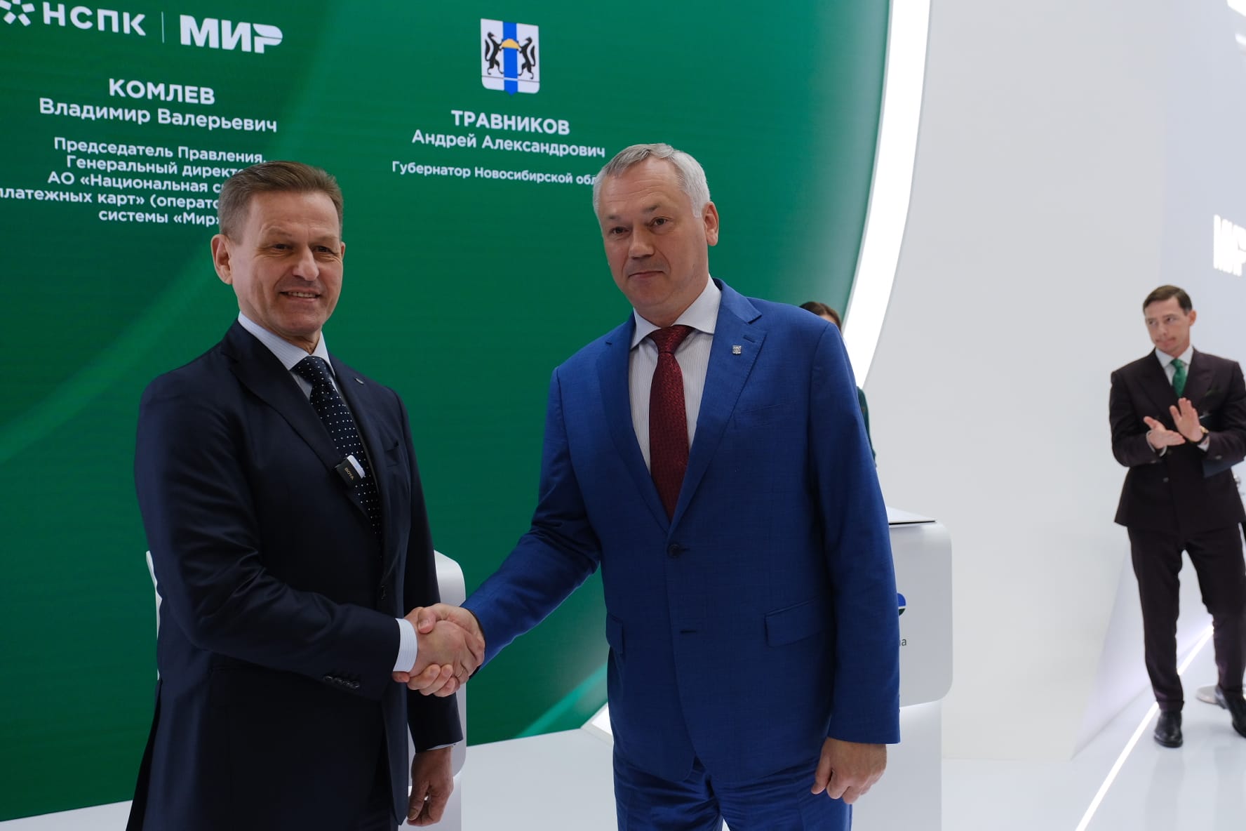 Губернатор Андрей Травников и генеральный директор платёжной системы «Мир» Владимир Комлев на Петербургском международном экономическом форуме подписали соглашение о сотрудничестве.