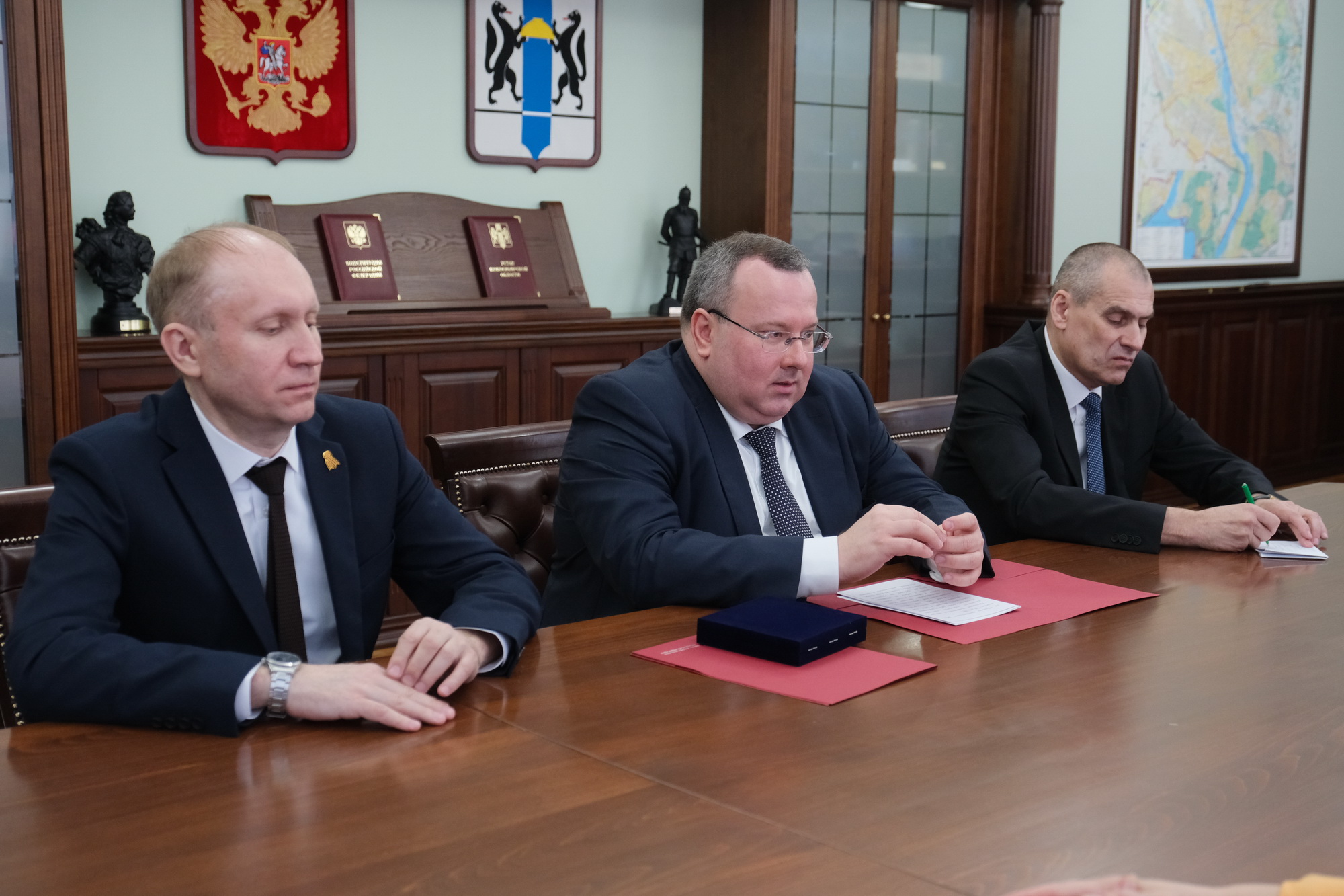 Работу «Государственного юридического бюро», поддержку бойцов СВО и их семей, а также ряд других вопросов взаимодействия в сфере юстиции обсудили во время рабочей встречи Губернатор Новосибирской области Андрей Травников и заместитель Министра юстиции РФ Константин Панферов.