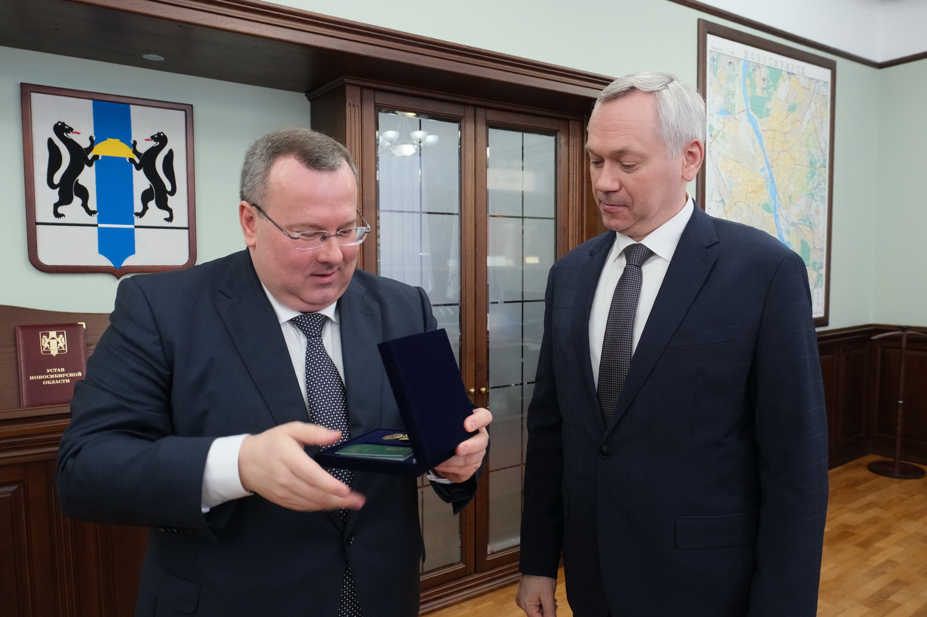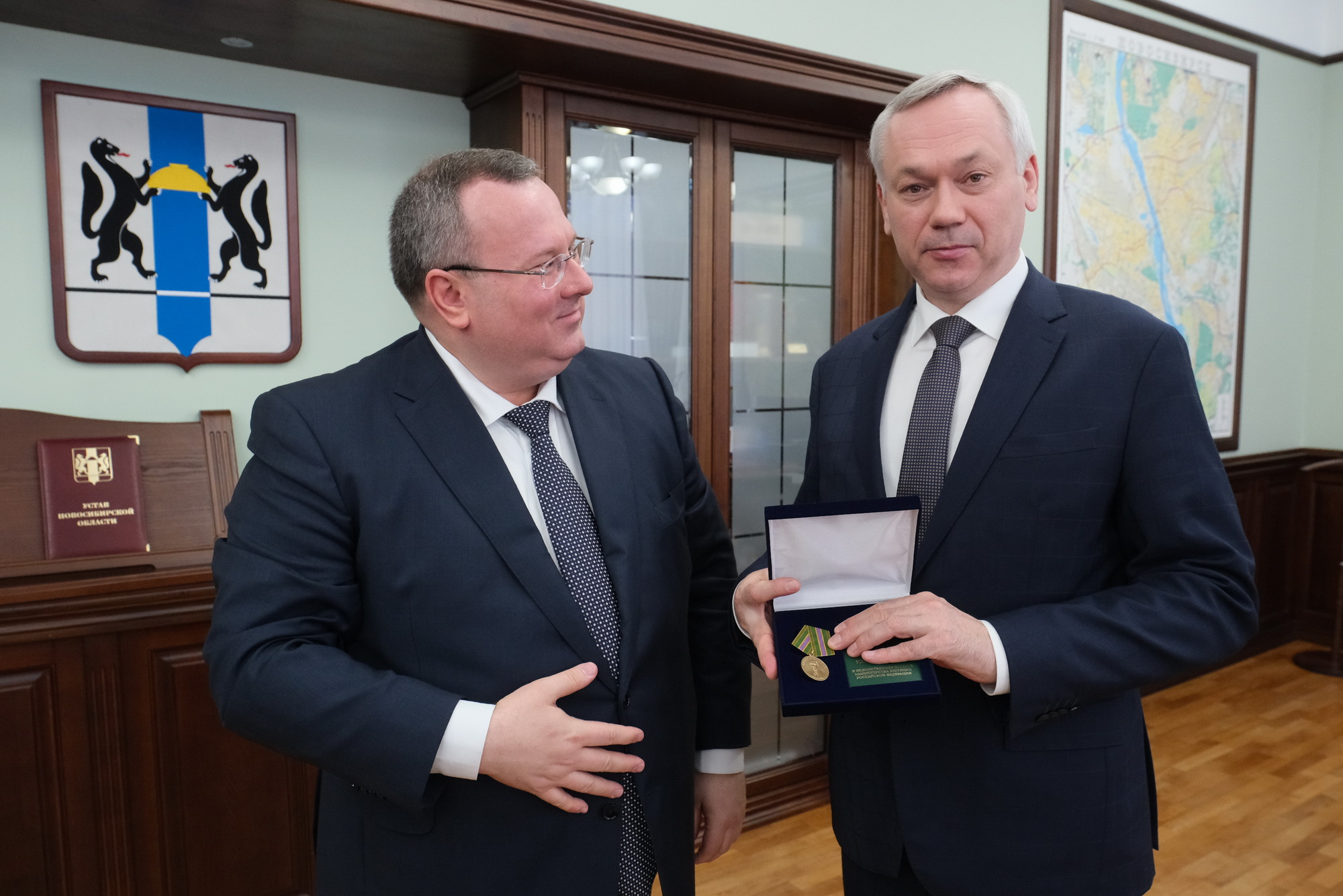 Также он по поручению Министра юстиции РФ Константина Чуйченко передал ведомственную награду Министерства юстиции – Медаль Михаила Сперанского – Губернатору Андрею Травникову.
