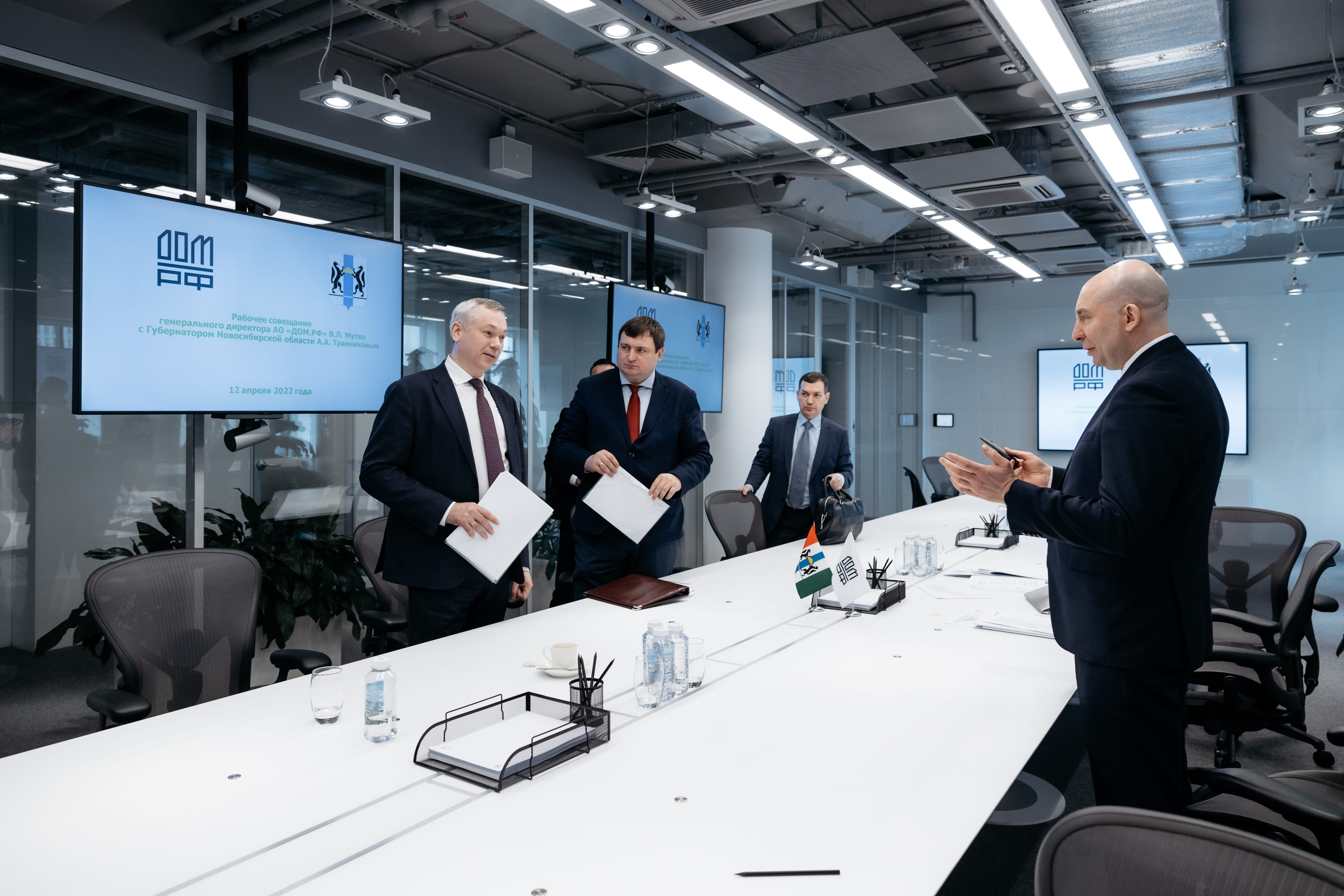 Новосибирская область и ДОМ.РФ договорились задействовать комплекс инструментов и механизмов Института развития в жилищной сфере для повышения качества жизни в регионе. Вопросы двустороннего сотрудничества обсудили 12 апреля в Москве губернатор Андрей Травников и генеральный директор ДОМ.РФ Виталий Мутко.