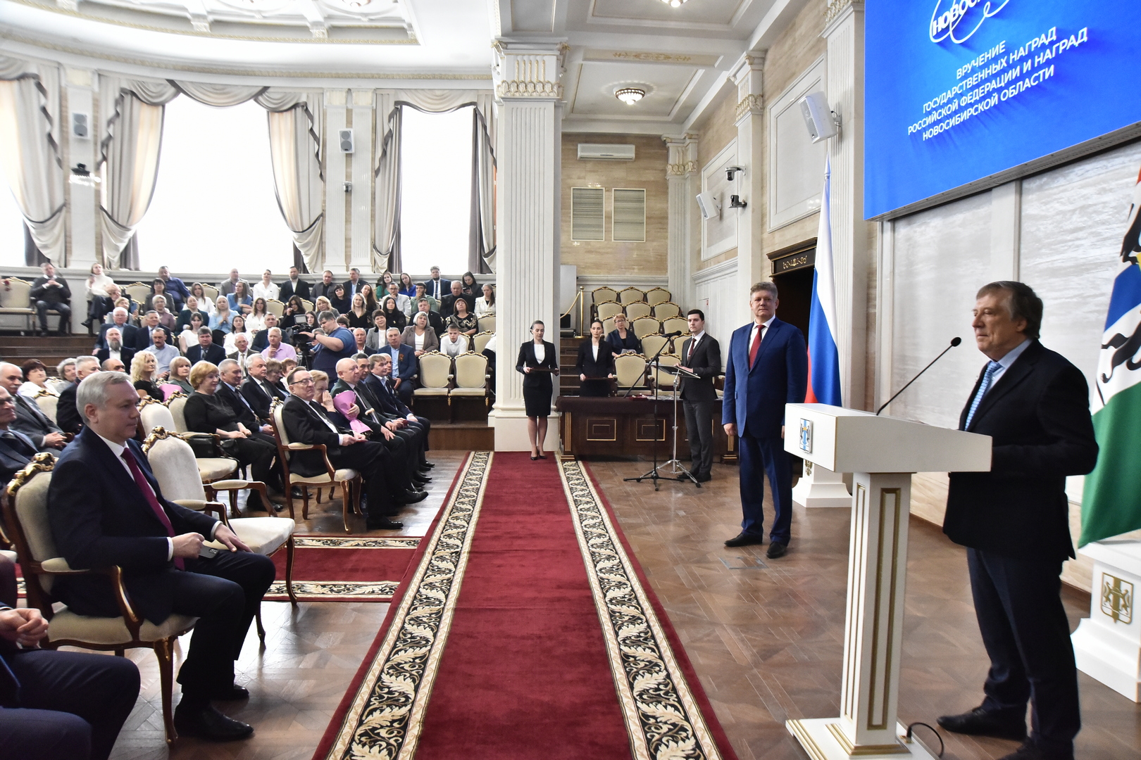 Полномочный представитель Президента России в Сибирском федеральном округе Анатолий Серышев, Губернатор Новосибирской области Андрей Травников и Председатель Законодательного Собрания региона Андрей Шимкив вручили государственные награды Российской Федерации, поощрения Президента России и награды Новосибирской области.