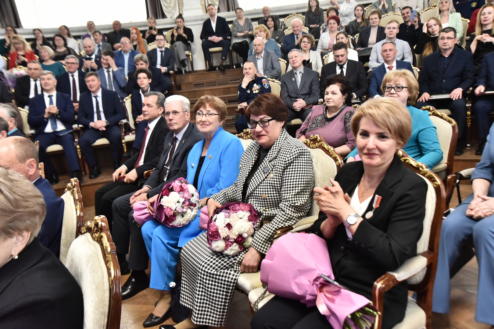 Мы сегодня делаем намного больше для того, чтобы продемонстрировать, что уважение к человеку труда – это одна из тех традиционных российских народных государственных ценностей, о которых мы несколько лет тосковали. Мы стараемся общими усилиями организовывать много различных мероприятий – ярмарки профессий, выставки предприятий. В большинстве средств массовой информации – телеканалов, газет, сайтов запущен проект «Герои труда», где рассказывается о трудовой деятельности не только тех, кто получил госнаграды, но и кто просто многие годы добросовестно трудился, о трудовых династиях. Призываю в эту работу включаться все организации, предприятия, профсоюзы. Это нужно нам, нужно тем молодым коллегам, которые впитывают эти ценности рядом с вами. Понимаю, что сегодняшние награды очень важны не только для вас и ваших близких, но и для ваших коллег. Пусть сегодняшнее событие вызывает у них гордость и желание совершать новые трудовые подвиги. Пользуясь случаем, вас, ваших родных и близких – с наступающим Днём Великой Победы», – поздравил собравшихся Губернатор.